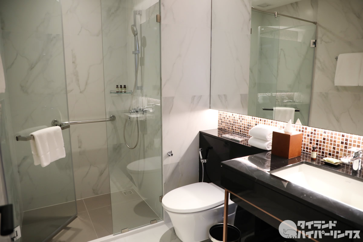ホテルのバスルームで個人的に最も気になるのがバスタオルの質。とにかく分厚くて、フカフカで、あっという間に水分を吸い取ってくれる高級バスタオルを期待して止まないのですが、「シンドーン・ミッドタウン」のバスタオルは期待通りでした!
