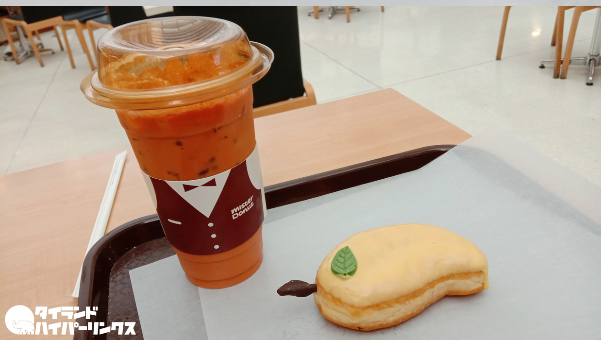 「SUMMER Fruity」は全7種類。スイカにバナナにマンゴーにパイナップル、あとはイチゴにファラン(グアバ)にライチでしょうか?この日店頭に残っていたのはマンゴーだけだったので、それを購入(19バーツ)。一緒にタイミルクーティー(50バーツ)も。