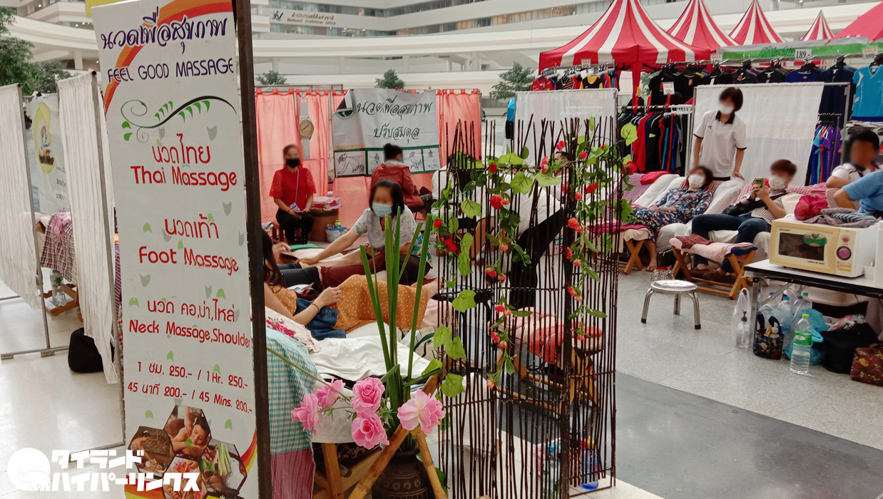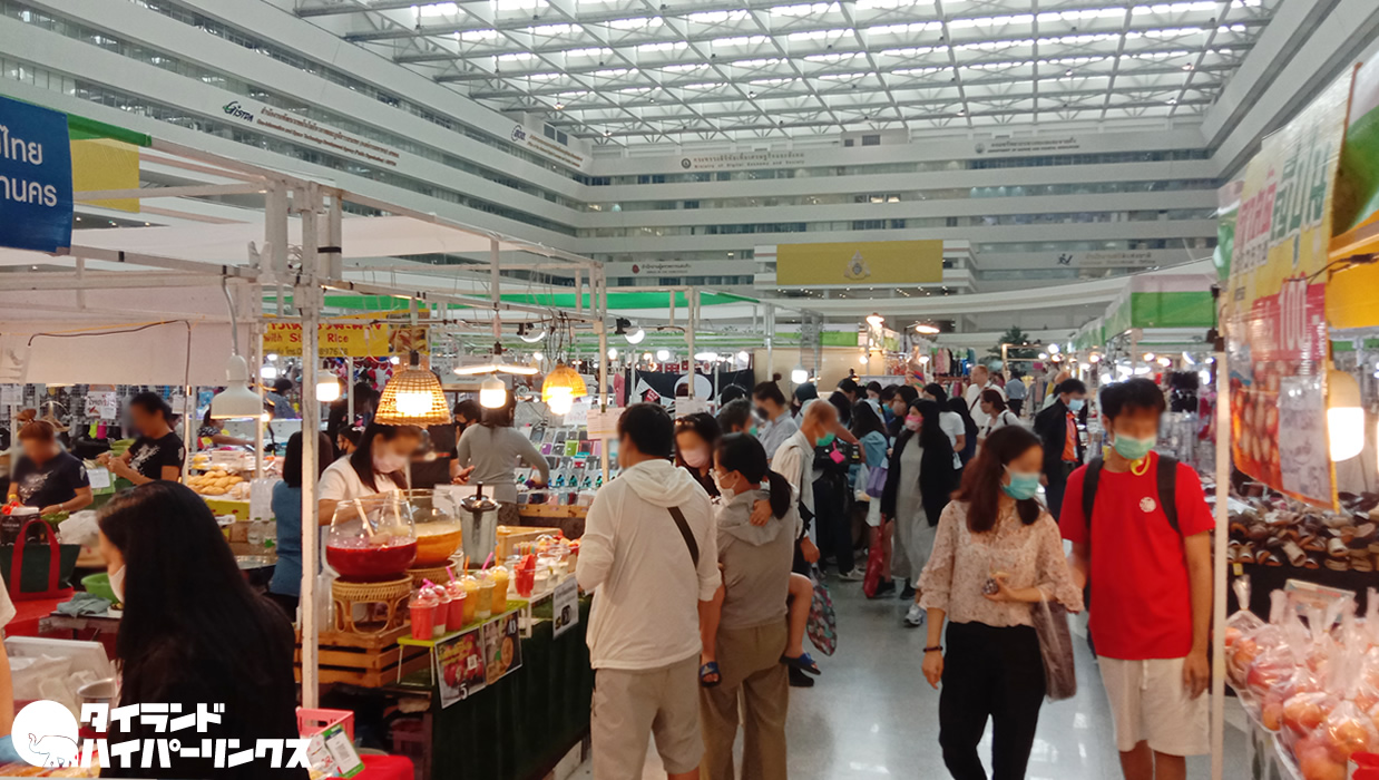 イミグレーションのあるタイ政府総合庁舎では、度々食品や雑貨のお店が並ぶ催しが行われます。この日もちょうど催しが行われていて、たくさんのお店が出店していました。