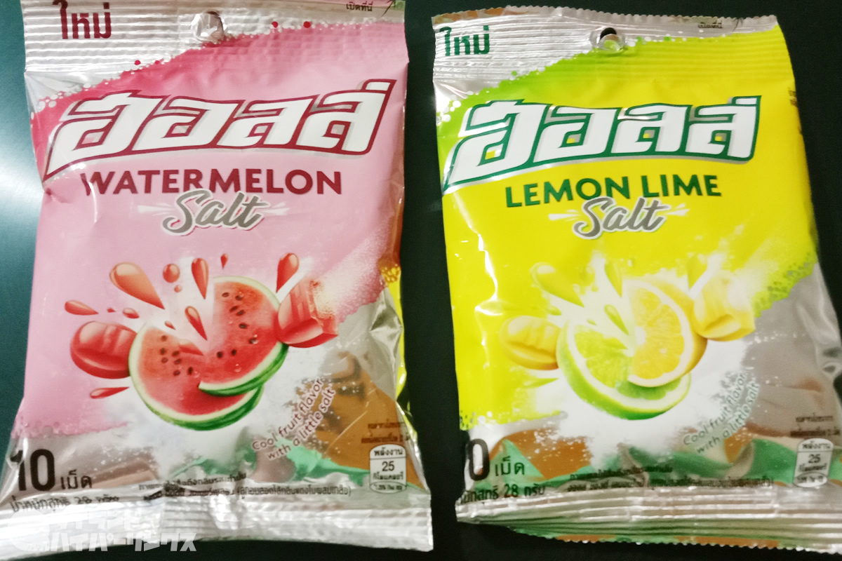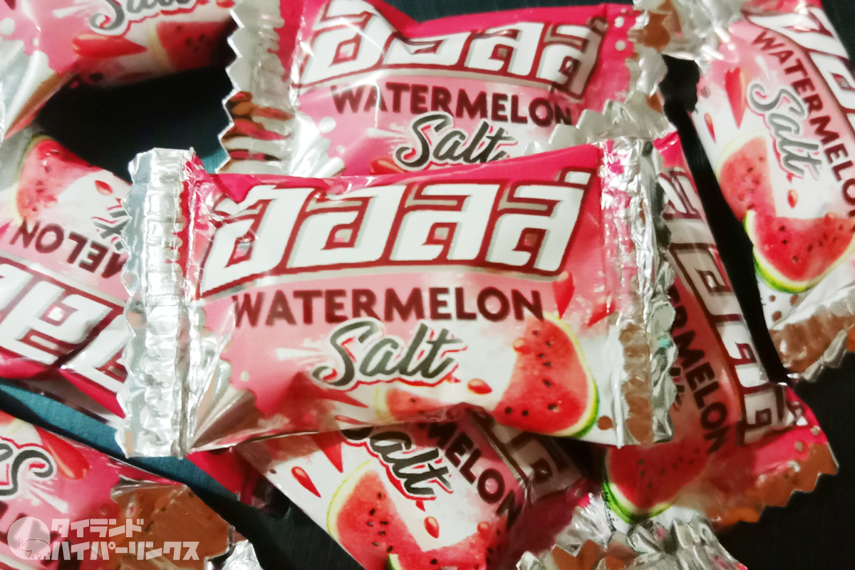 早速家に帰って「塩すいか」を味見。スイカそのままの美味しさに塩のアクセント+ひんやりとしたクールミントで、猛暑の季節の今のタイではピッタリのキャンディーですよ。