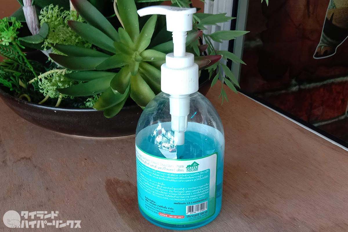 中華料理屋さんの入り口には、しっかりと消毒用アルコールジェルが置かれていました。手を消毒して入店。