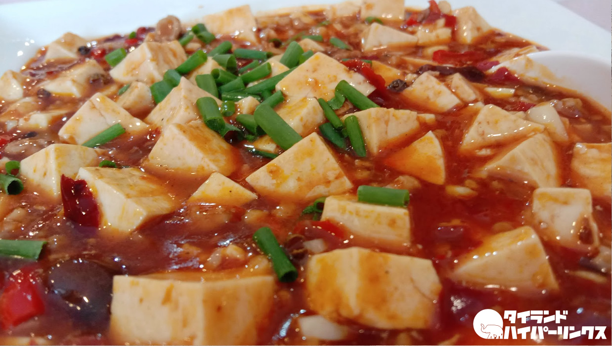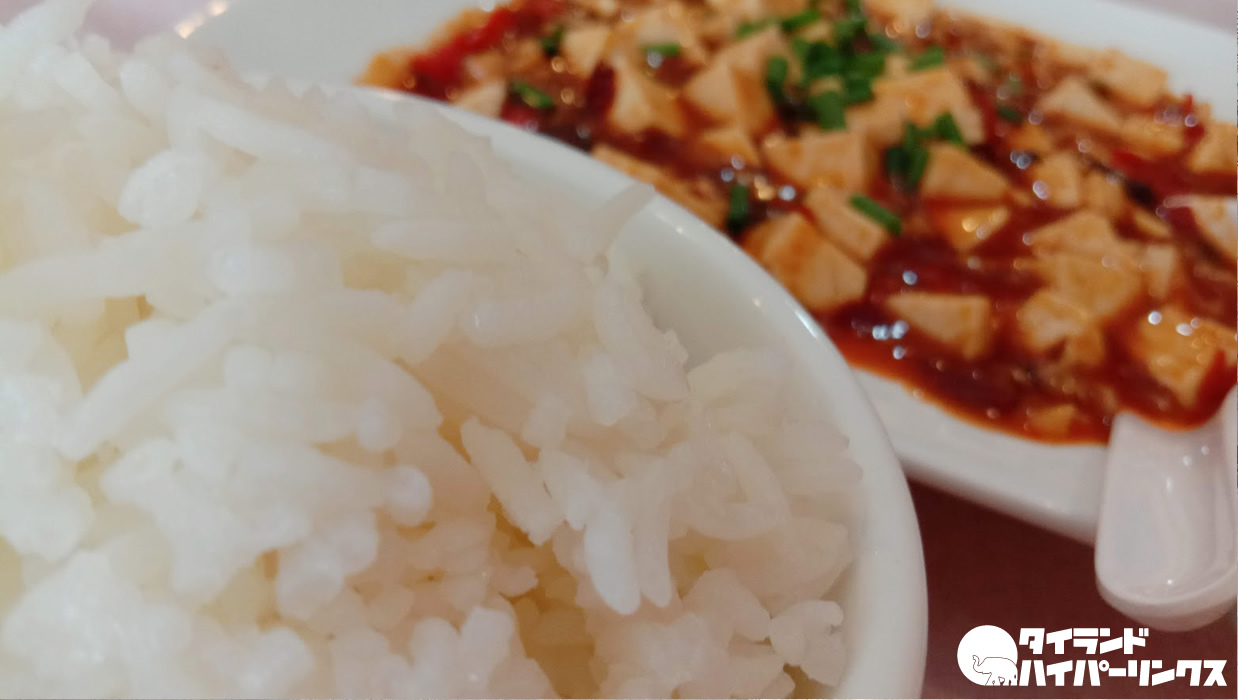 早速、麻婆豆腐(100バーツ)とライス(20バーツ)をオーダー。出てきたのがこちら!