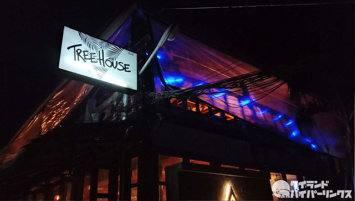 ローダラムビーチへ続く道にある「TREE HOUSE」も爆音で営業中。
