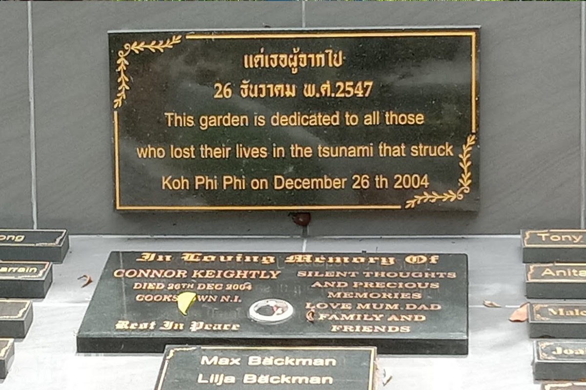 ピピ島には、津波のことを忘れることのないように、小さいながらも津波記念公園が設置され、慰霊碑が建立されています。