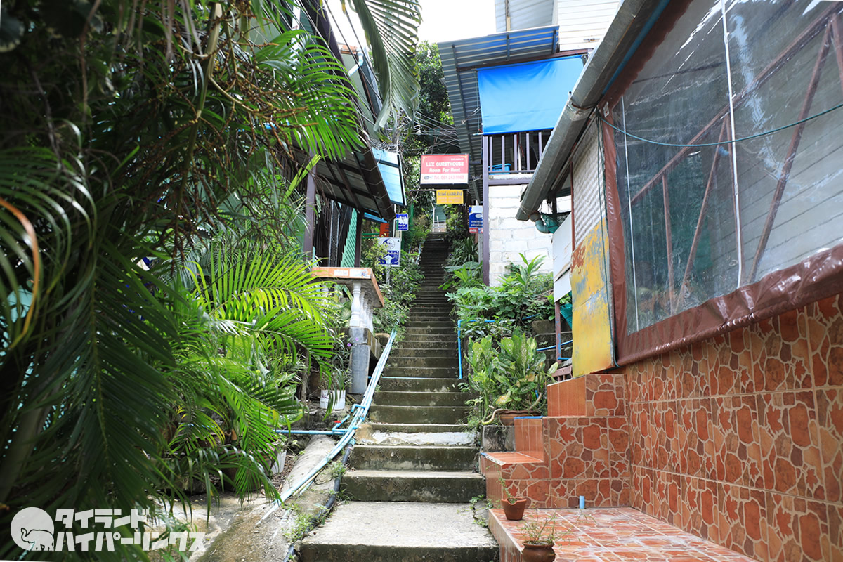 人気のリゾートアイランド・ピピ島を見渡せる絶景ポイントがあると聞いて向かったのは「ビューポイント(VIEWPOINT)」。そこへ辿り着くには、急な階段、坂道をひたすら登って行かなければなりません。