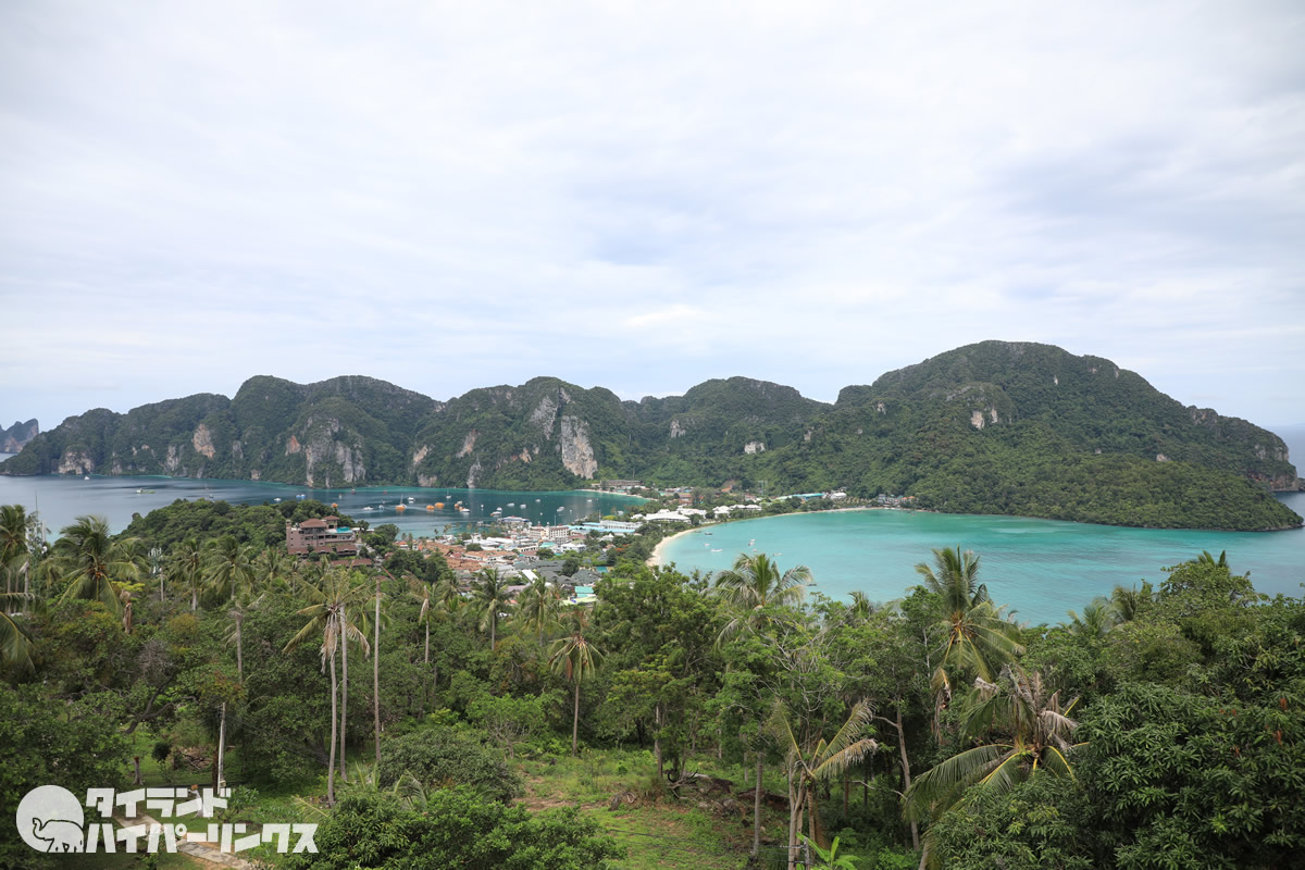 坂道を歩いて登って10分ほどで「ビューポイント2」に到着!そこはピピ島中心部を見下ろせる、最高の場所でした。