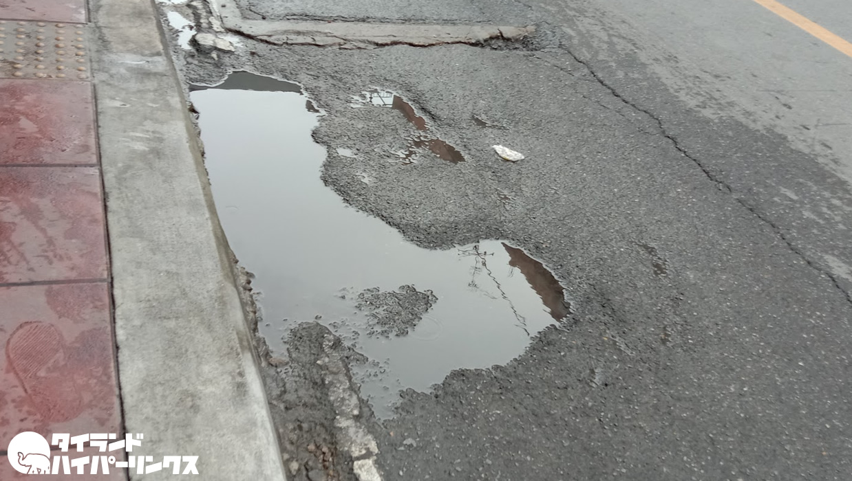 今のタイは雨季の真っ只中。道路事情が日本ほど良くないタイではアチコチに凹みがあり、水たまりができがち。そこを通った自動車やオートバイに、泥水をはねられがちです。