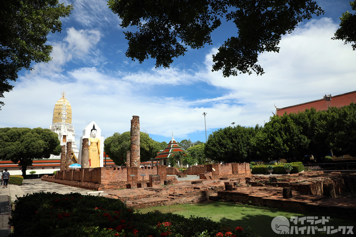商店や屋台が並ぶ通りから寺院内に入ると、そこには遺跡が。タイ政府観光庁によると「ピッサヌロークは、スコータイ王朝(西暦1238-1378年)とアユタヤ王朝(西暦1350-1767年)の2つの異なる王朝時代を通して繁栄した地であり、1584年にビルマ(ミャンマー)からの独立を宣言したアユタヤの伝説の王『ナレスワン大王』の誕生の地でもあります」とのこと。どうりで周辺を散歩していると、遺跡を見かけるわけです。