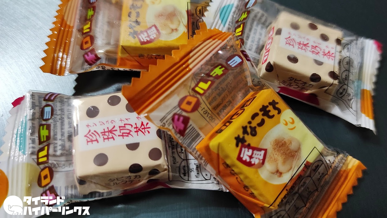 「元祖きなこもち」には中に餅(?)が、「珍珠奶茶」には中にタピオカ(?)が入っていて、どちらも本当のきなこもちやタピオカミルクティーの味わい。昔のはもちろん今時の「チロルチョコ」も、とっても美味しいですね!気になる方はお試しを。