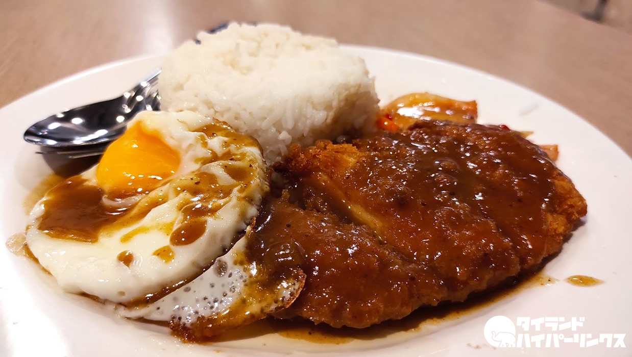 「日本のカレー KARE’YA」のブースへ向かい、65バーツの鶏かつカレーと10バーツの目玉焼きをオーダーです。