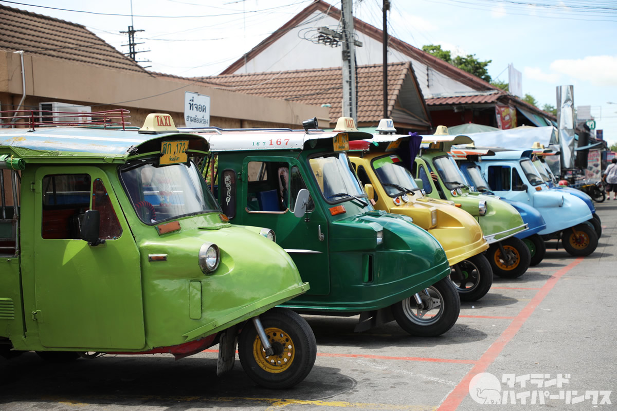 タイのタクシーと言えば、トゥクトゥクですね。もちろん今は普通の乗用車のタクシーが主流ではありますが、それでもトゥクトゥクは観光に生活に欠かせないタイ名物です。