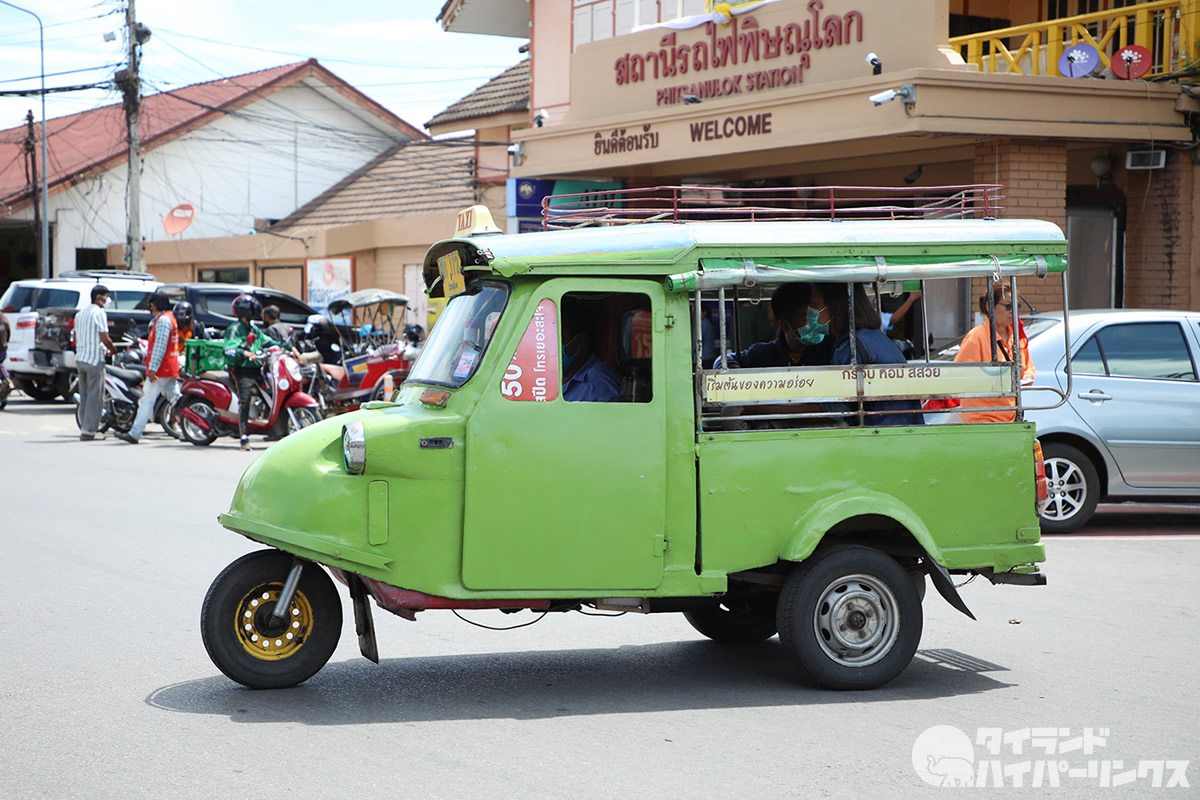 ピサヌロークのトゥクトゥクはダイハツ・ミゼット型。アユタヤのトゥクトゥクと同じもののようですね。(参照 アユタヤのミゼット型トゥクトゥクが可愛すぎ!)