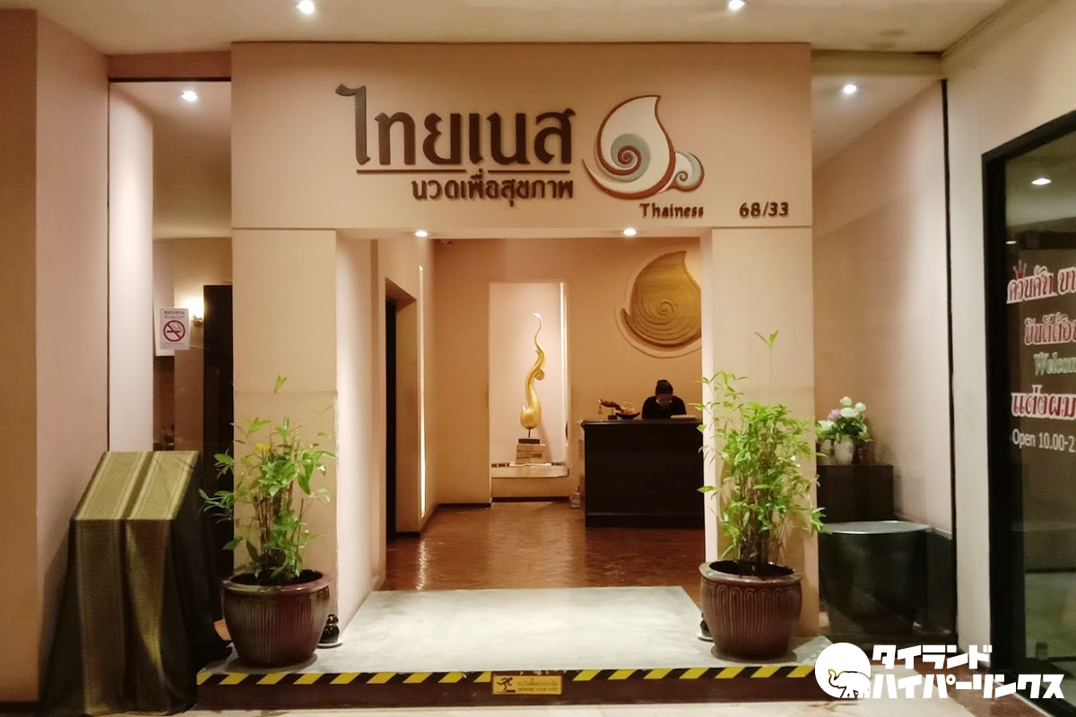 街のあちこちにもタイ式マッサージ屋さんがありますが、今回訪れたのは宿泊していた「トップランド ホテル」内にある「タイネス」というマッサージ店です。
