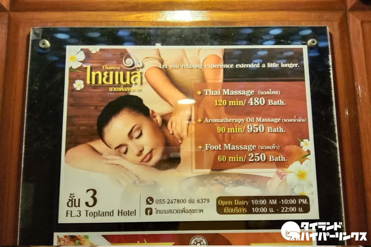 ピサヌロークでタイ式マッサージ、「トップランド」で2時間480バーツ