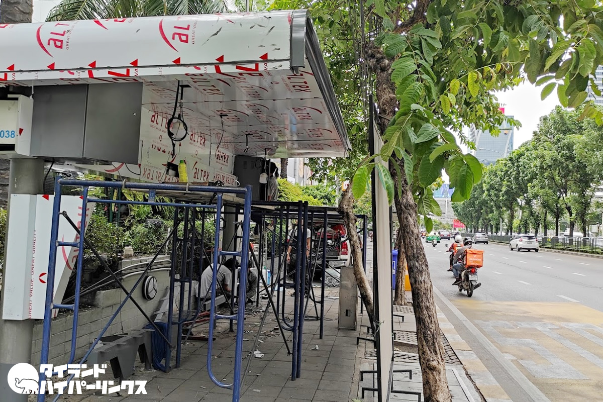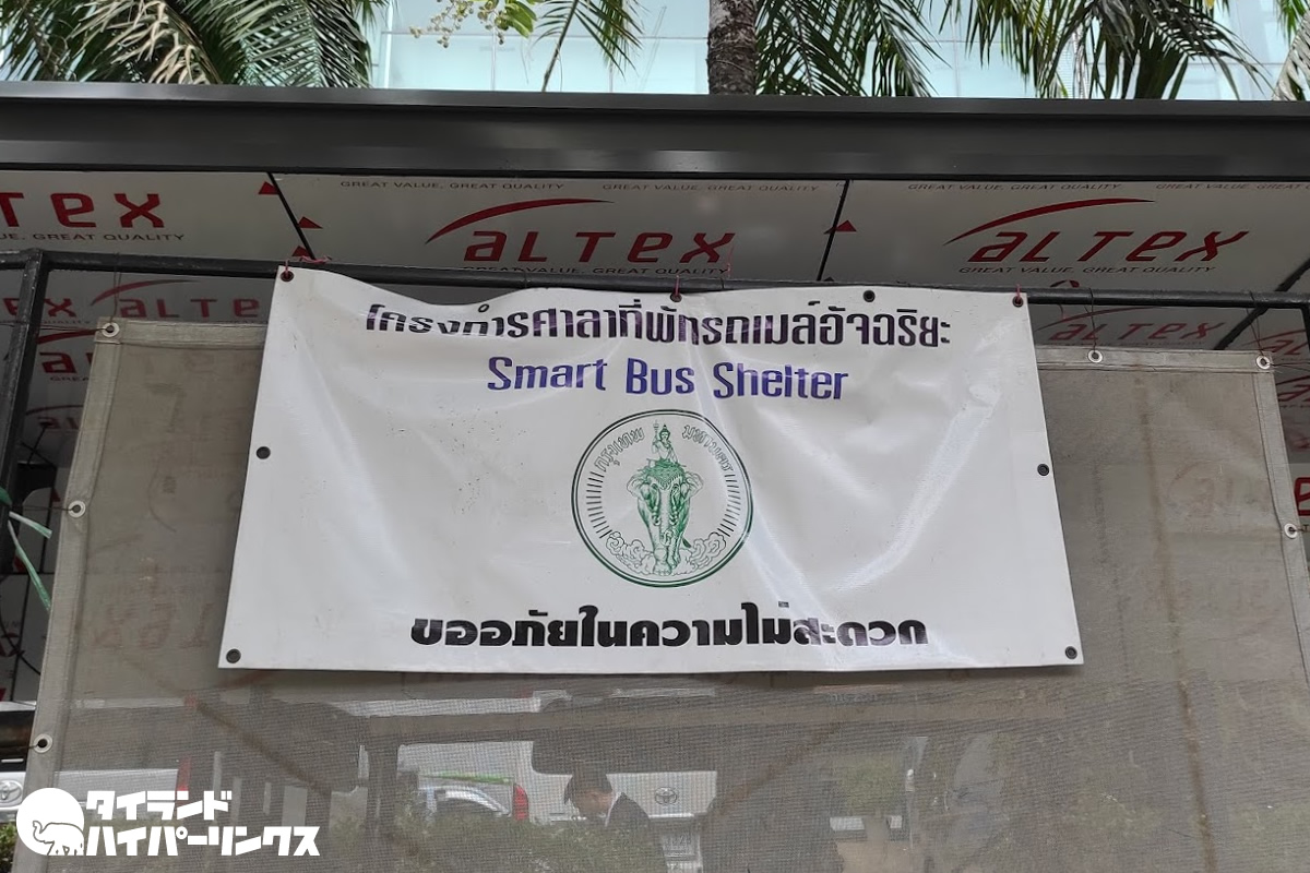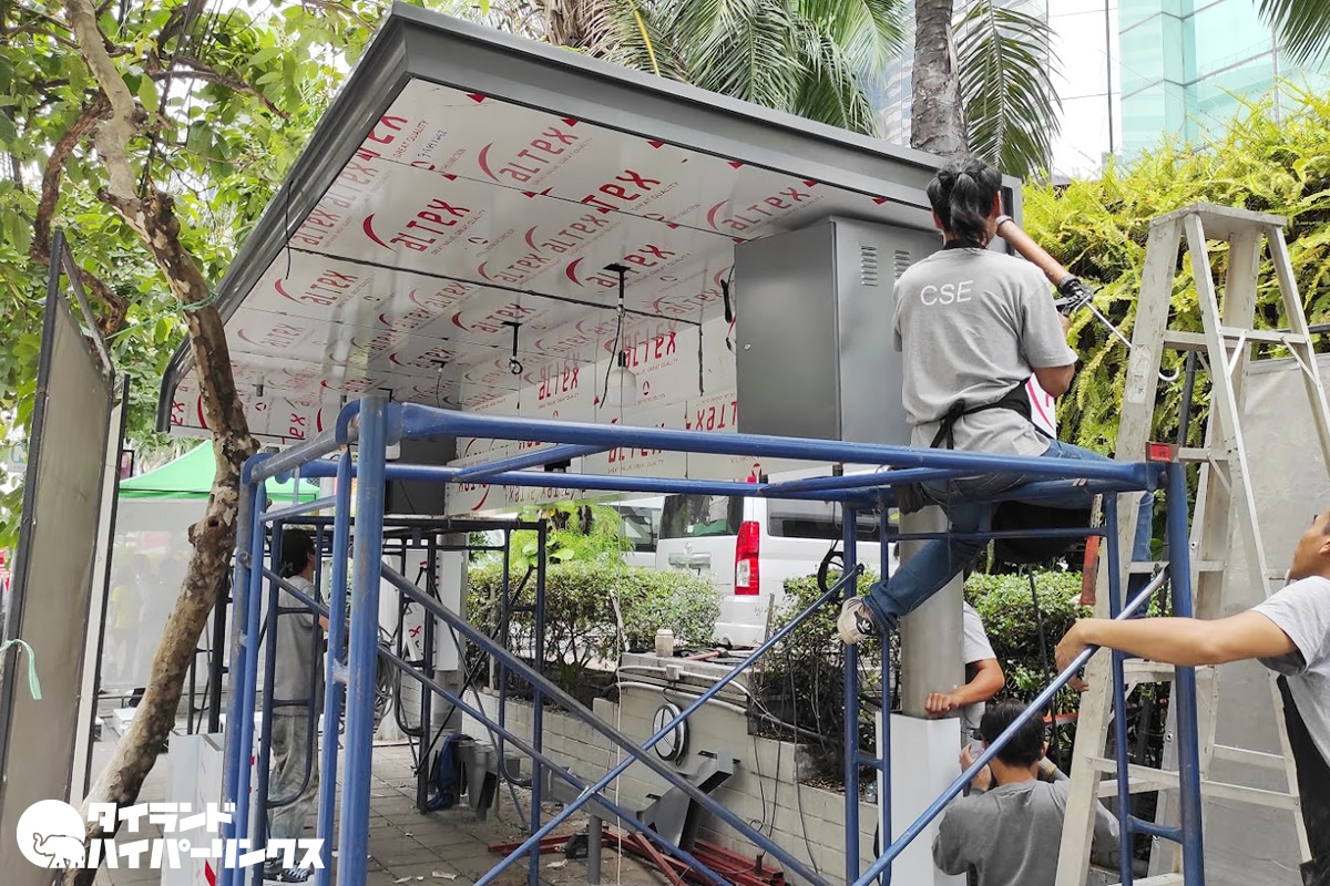 さらにラチャダーピセーク通りを挟んで反対側のフォーチューンタウン前に行ってみると、ここでは「スマートバスシェルター」を設置中でした。
