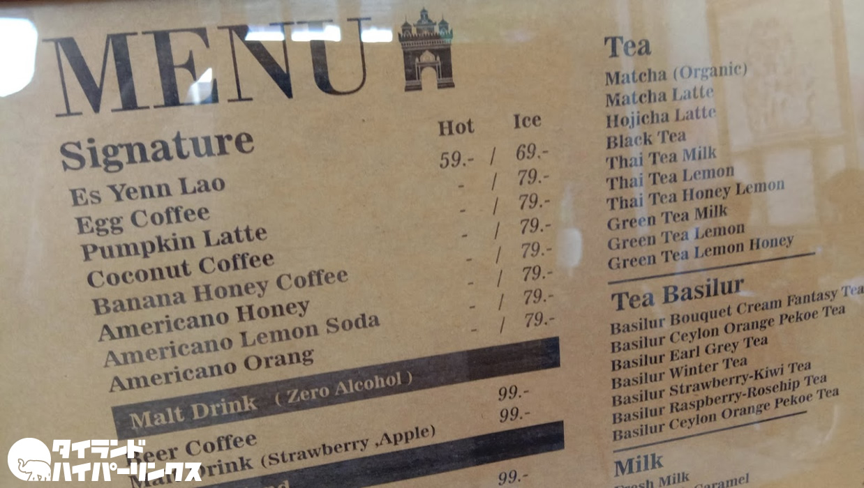 おすすめメニューを聞くと、「よろしければシグネチャーをどうぞ」とのことで、一番に上に記載されていた「Es Yenn Lao」(69バーツ)を注文です。