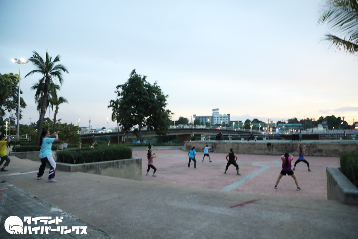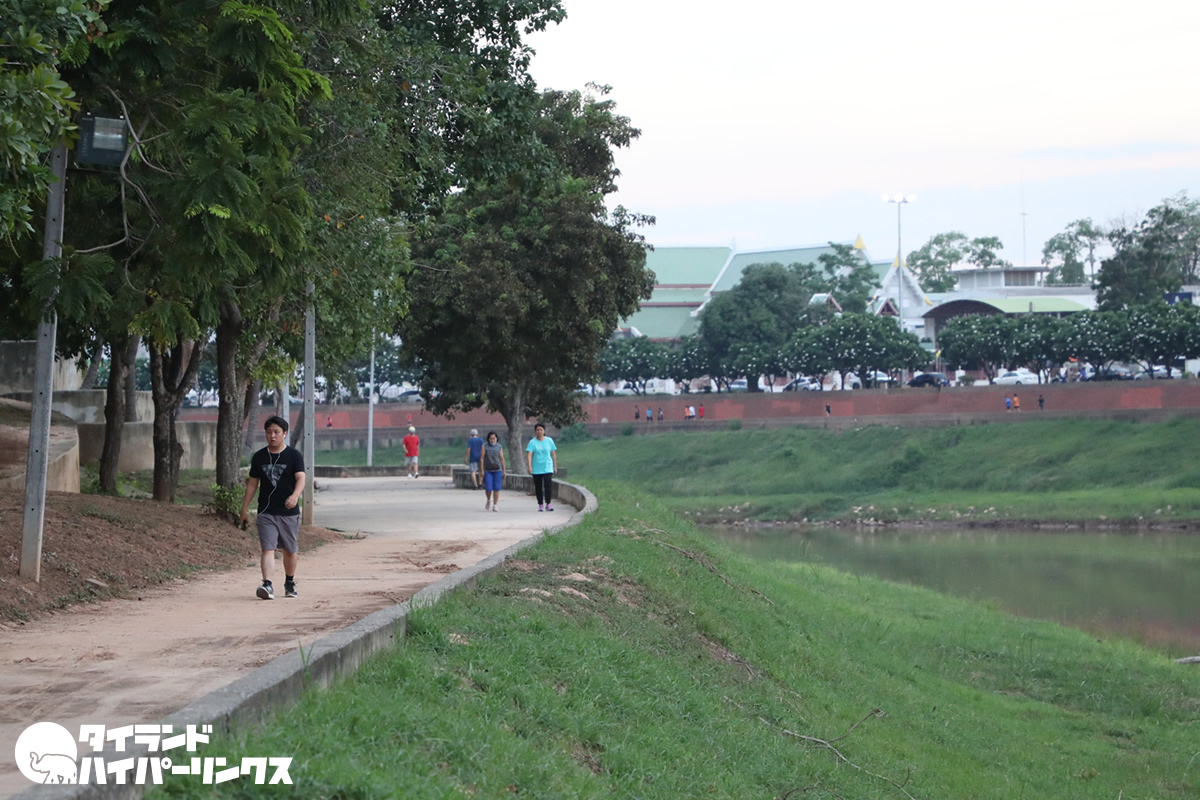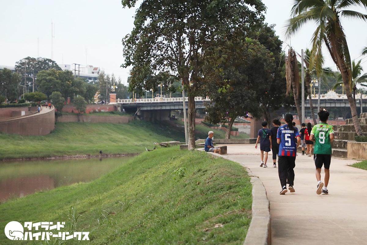 日が傾き涼しくなると、ピサヌロークの人々はナーン川に集まりだします。特にランニングしている人たちが目立ちますね。