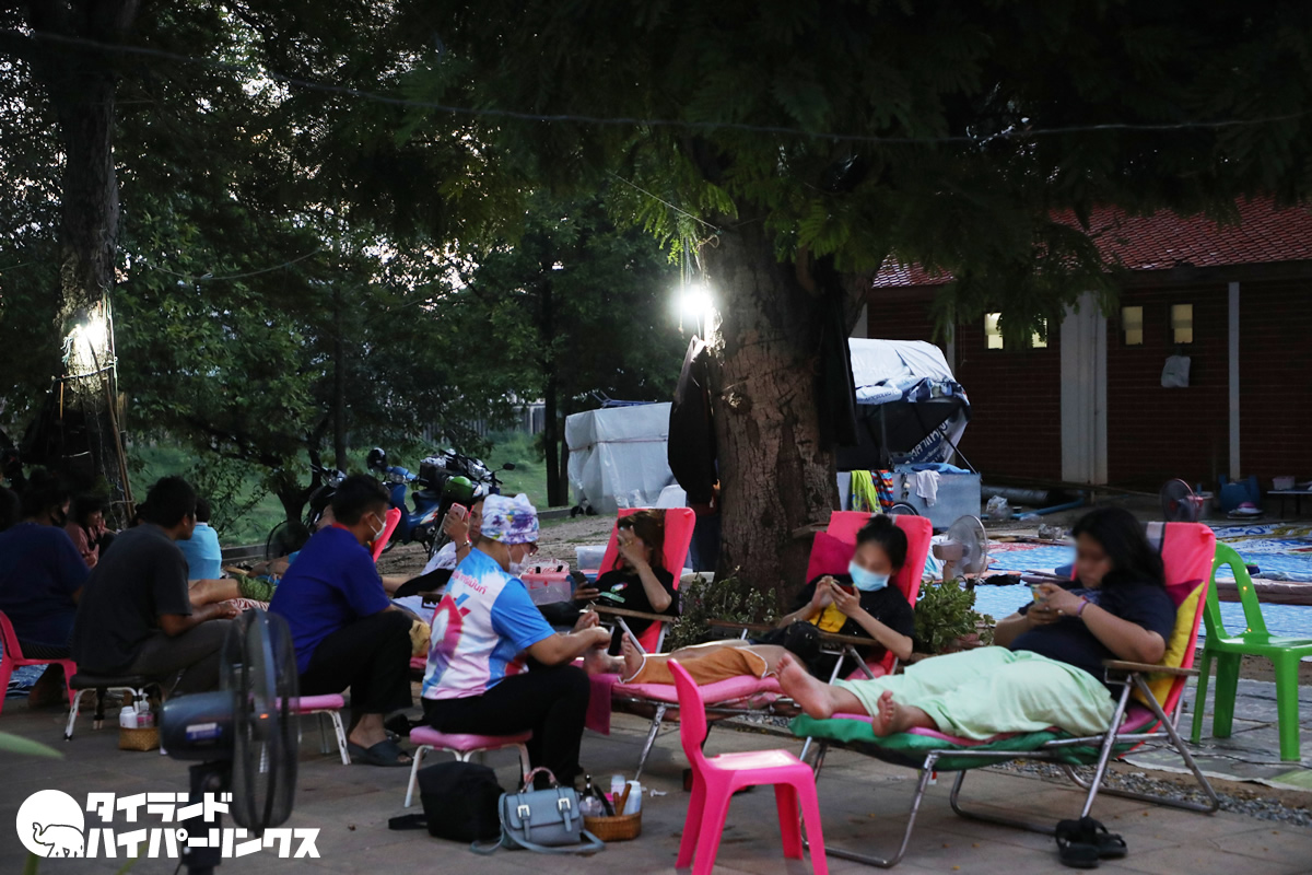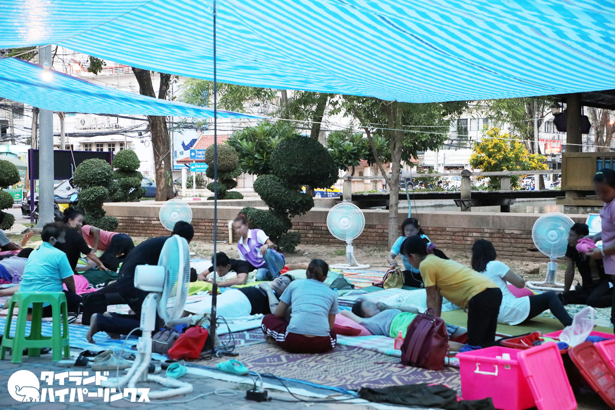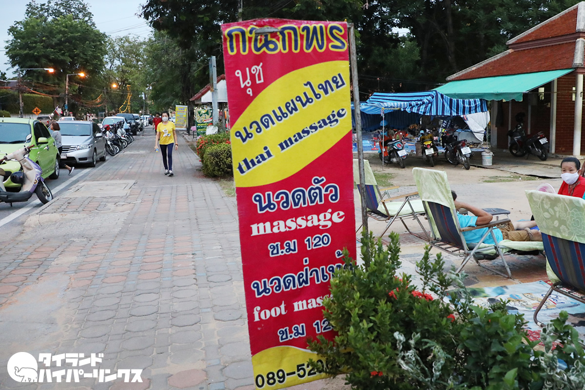 実はこれは夕空の下のタイ式マッサージ店。価格は全身マッサージもフットマッサージも1時間120バーツと安く、気軽にマッサージを受けられるんですね。