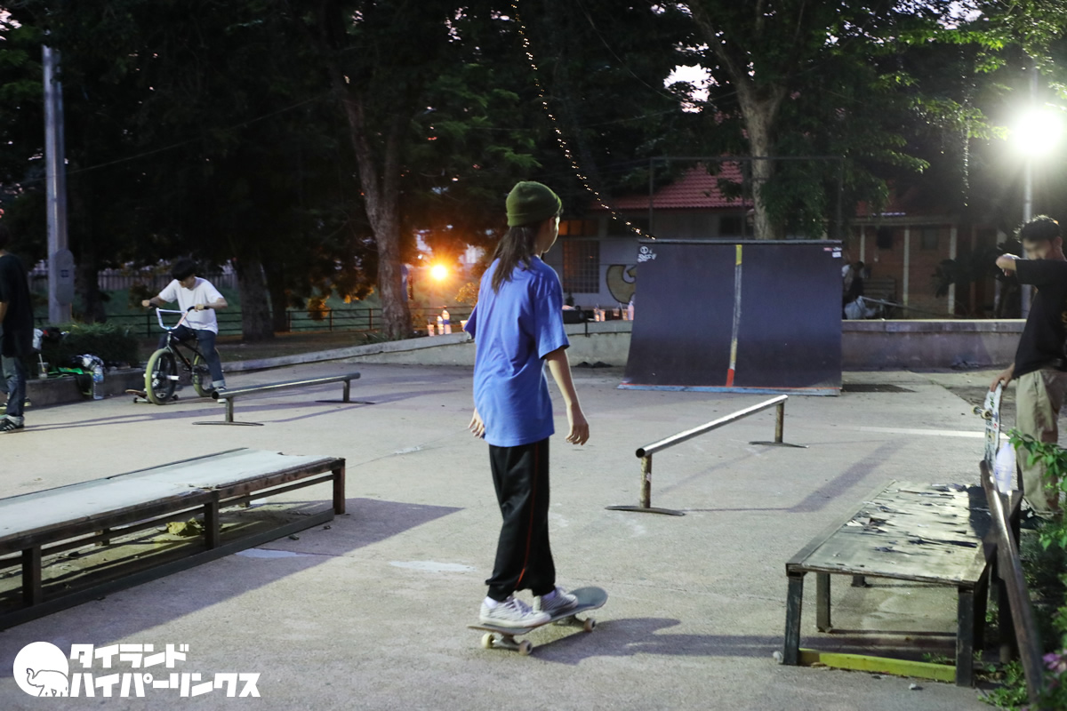 少年少女たちは、スケートボードの練習です。