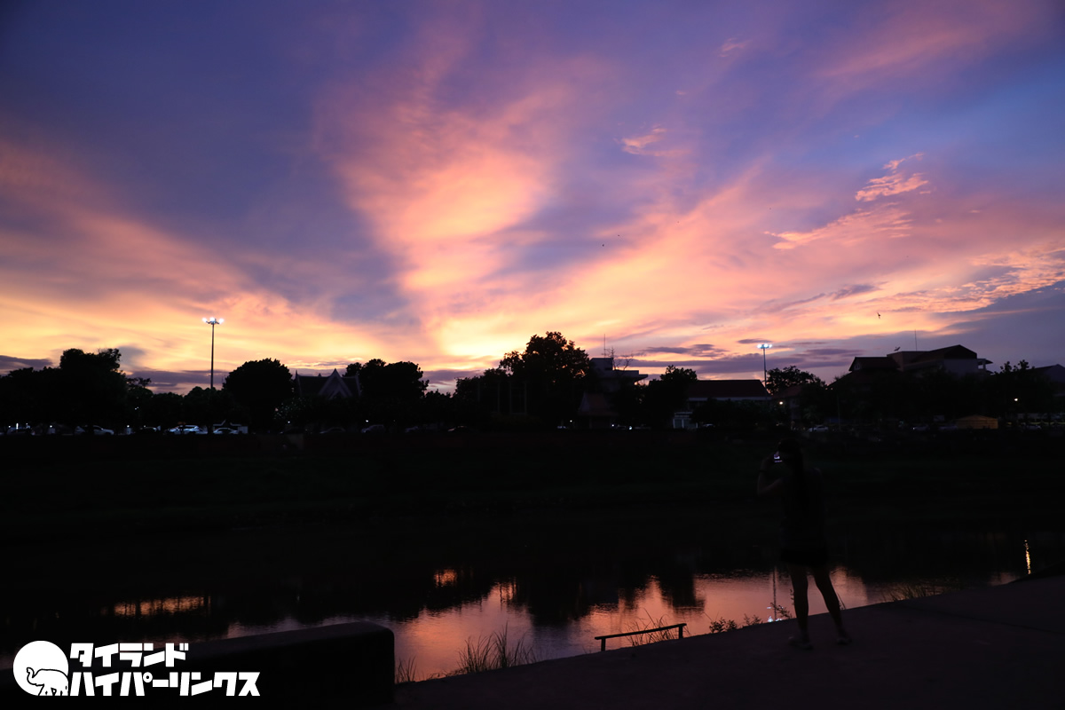 タイ北部のピサヌロークを流れるのはナーン川。常夏のタイですから、畔を散歩するのは昼間は暑すぎ。なので涼しくなる夕方過ぎの散歩がおすすめです。