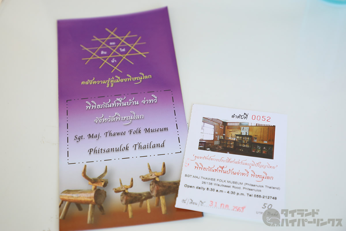 「タウィー民俗資料博物館」は、タイ語で“จ่าทวี”、英語で“Sgt.Maj. Thawee”とあるように、“タウィー軍曹”の私設博物館で、全ての展示物は20年以上かけて北部を中心にタイ各地から収集したという私物。入場料金50バーツという安さもあって、ピサヌローク観光では見逃せないスポットです。