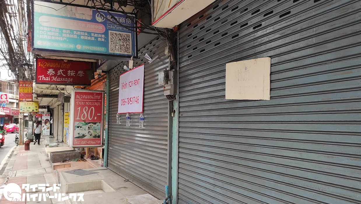 1年ほど前にプラチャーラートバンペン通りを訪れたときも多くの中国人観光客が滞在した「ラチャダーシティーホテル」が建て直しで休業し、この辺りに宿泊する中国人旅行者が減少したからなのか、空き店舗が目立ち、10店舗ほどに貸店舗の張り紙がしてありました。