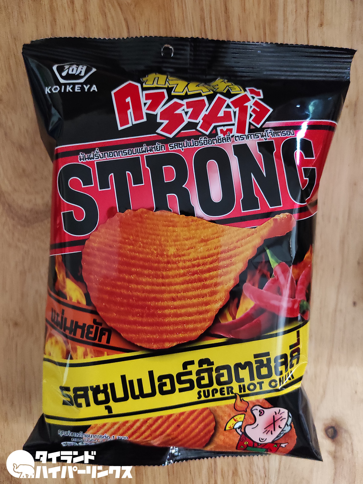 この「ストロング・スーパーホットチリ味」というネーミングを見ておわかりのように、もちろん激辛。口に入れた時は「あれ?それほど・・・」と思ったら、後からガツンと辛さが来ましたよ(笑)。でも美味しい!