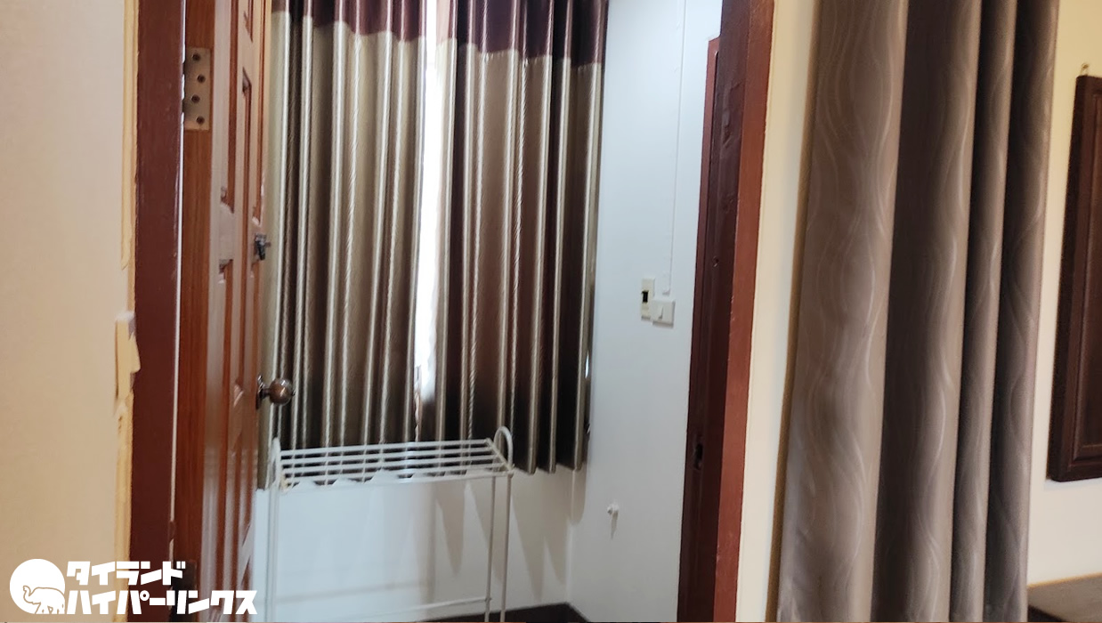 バスルームの前には小さな部屋があり、洗濯物も干せます。