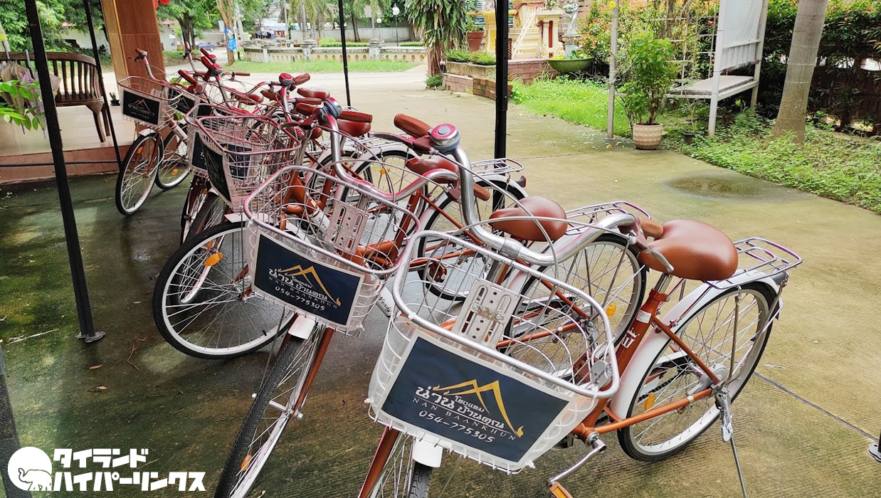 ナーンの街では、あちこちのお寺を見て回ったりすることになると思いますが、歩いて回れないことはないものの、はやり乗り物があったほうが便利。「ナーンバーンクン ホテル」では自転車を無料で貸し出しています。鍵がついていないのでスタッフさんに尋ねると「盗む人はいませんから(笑)」とのことでした。