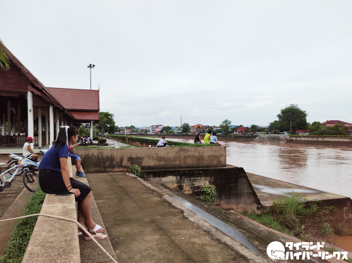 昼間にナーンの街を観光し、夕方になってナーン川のほとりまで行ってみました。そこでは大勢の人が川を眺めながらただ座っていて、「川を見てるだけなんて、みんな暇なんだな~」なんて勝手な事を考えていたら・・・