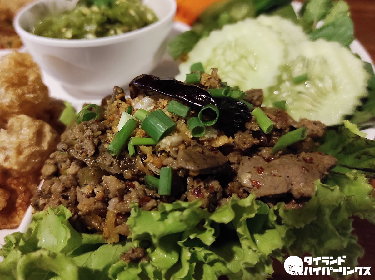 そして、これがおそらくメインなのでしょう、「ラープムークワ(ลาบหมูคั่ว)」です。これにはご飯が必要ですね。