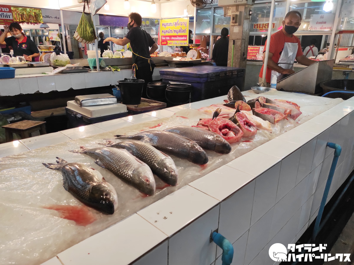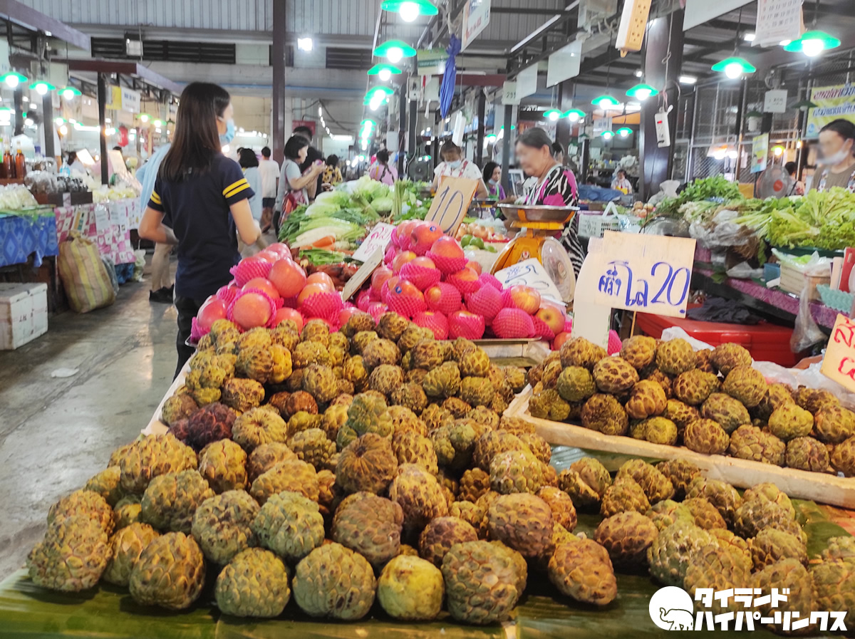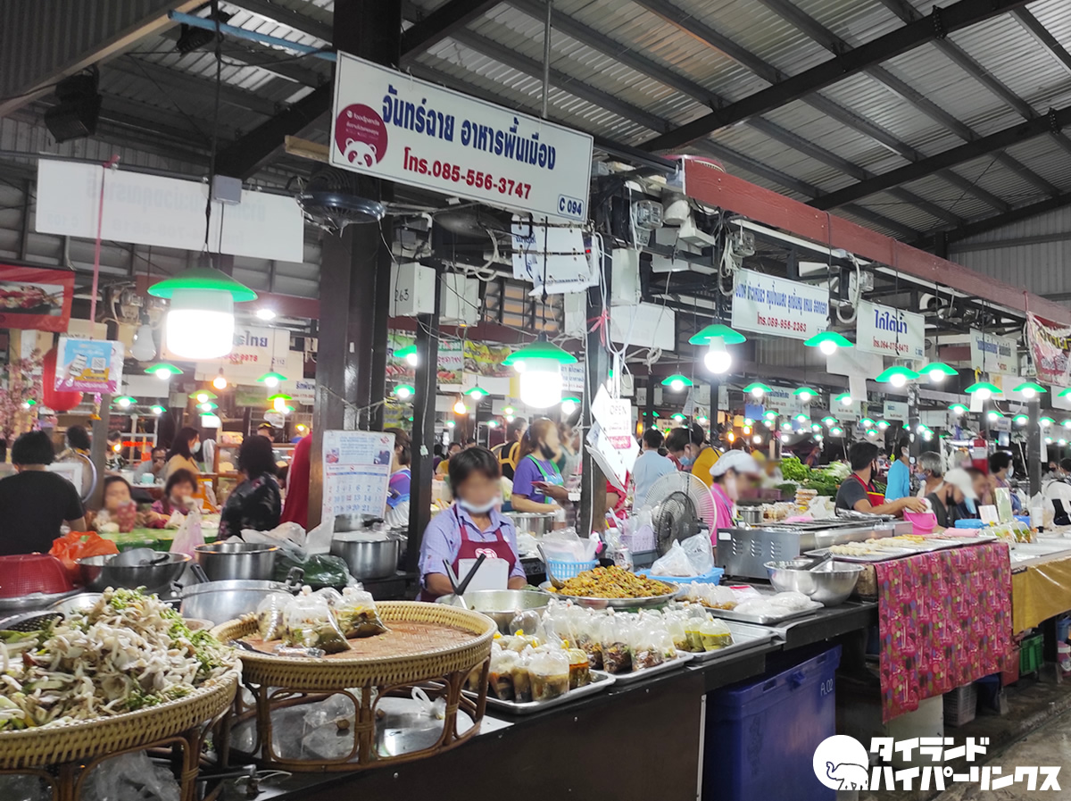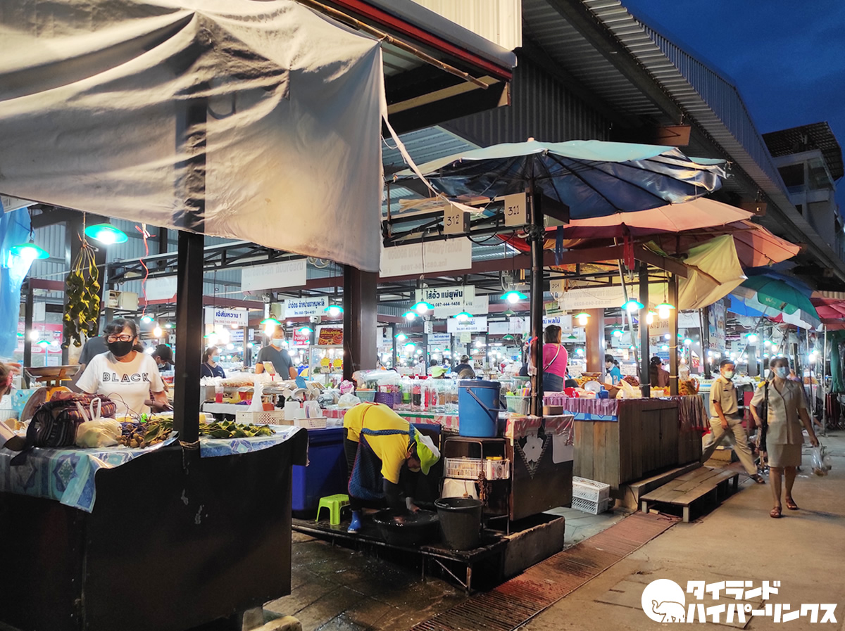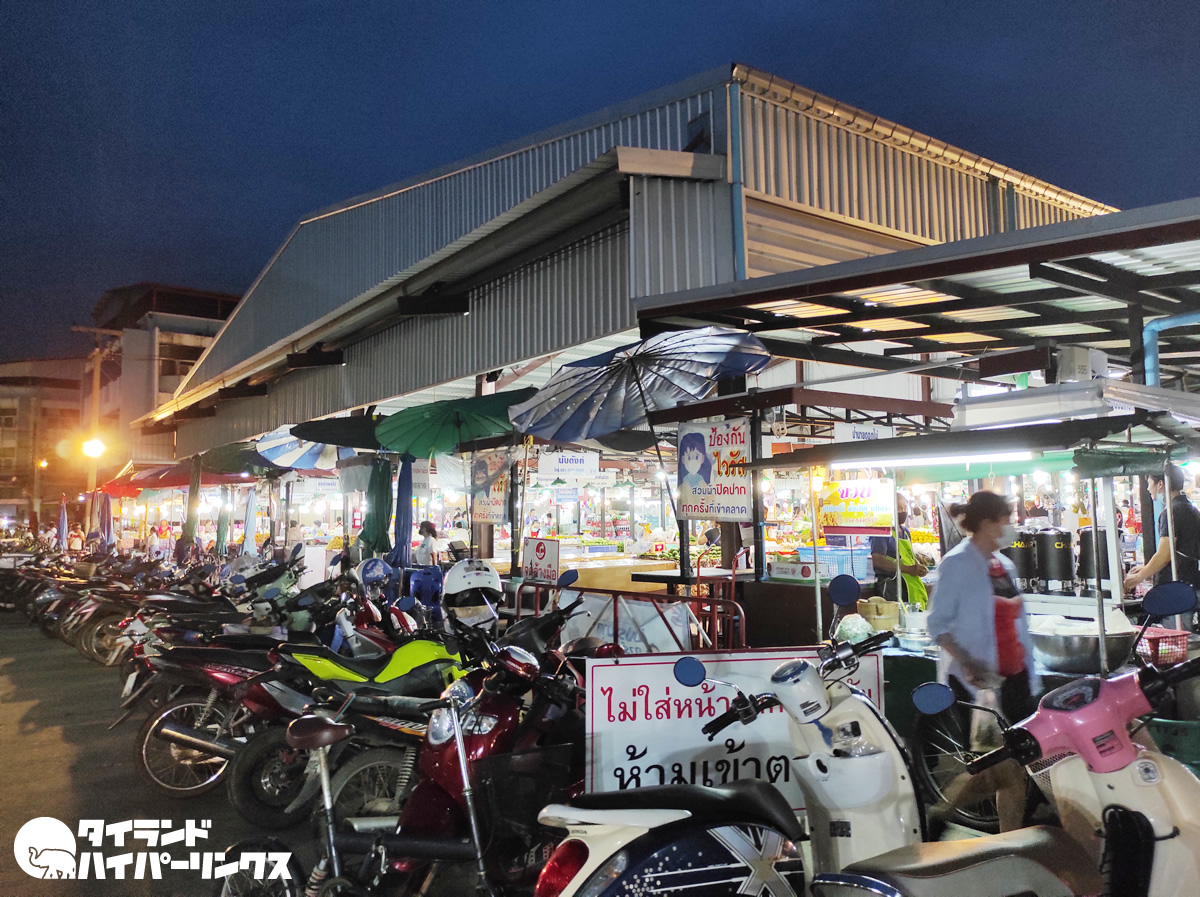ラーチャパサドゥ市場があるのは、シームアン公園の近く。夜になっても沢山の人で溢れる、食品がずらりと並ぶナーンの人々の胃袋ですね。確認はしていませんが、グーグルマップには24時間営業と記載してありました。