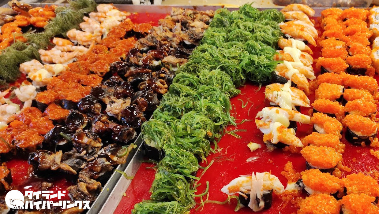 これがタイで進化した寿司なのか、日本人の中には「こんなのは寿司じゃない!」と怒る人もいるんでしょうね~。