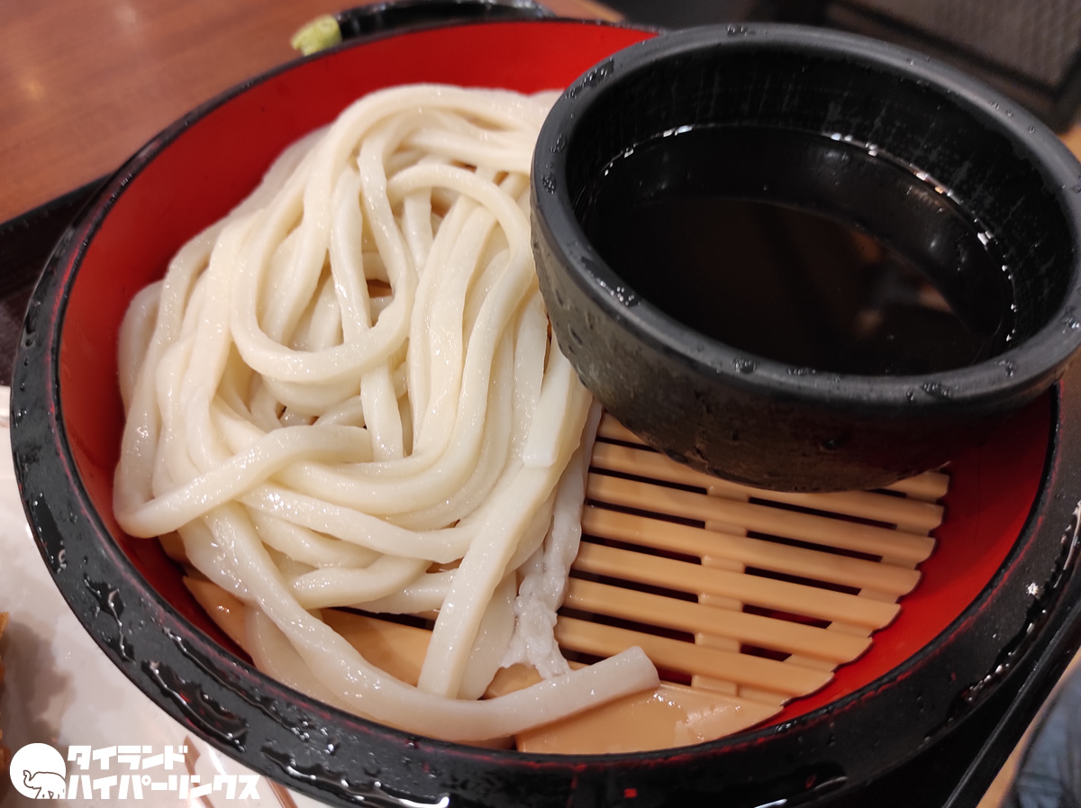 何を食べるか悩んだ末、結局オーダーしたのは定番の「ざるうどん」でした。価格は79バーツなので約270円。ほぼ日本と同じ価格ですね。