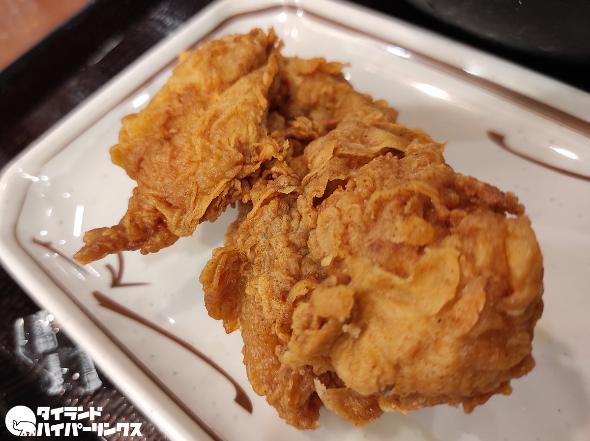 そしてピリ辛のフライドチキン。価格は39バーツ。水が20バーツでした。