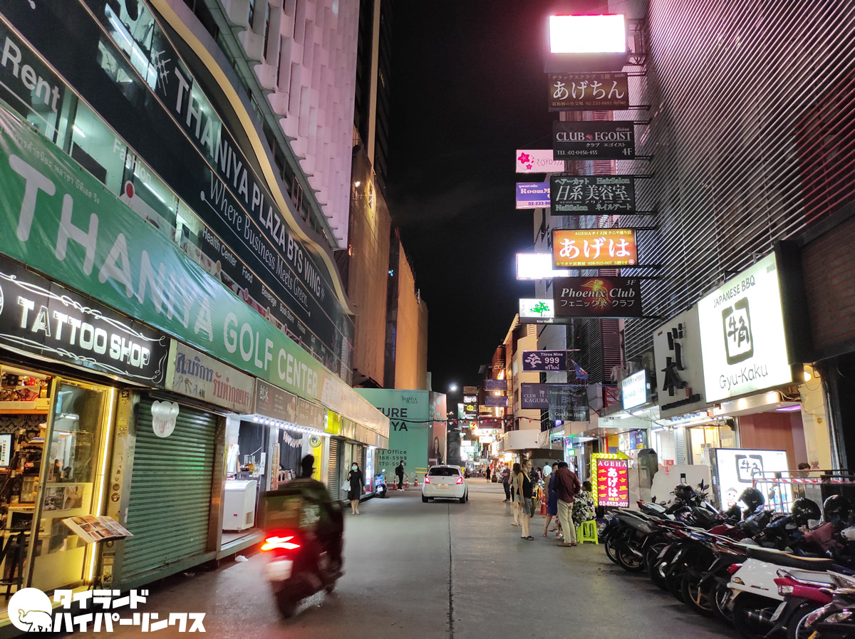 シーロム通りとスラウォン通りとを繋ぐ、250メートル弱の通り。日本料理店や日本人向けのカラオケクラブが並び、看板は日本語だらけ。通常時は、多くの日本人観光客や日本人駐在員などで賑わうのですが・・・。