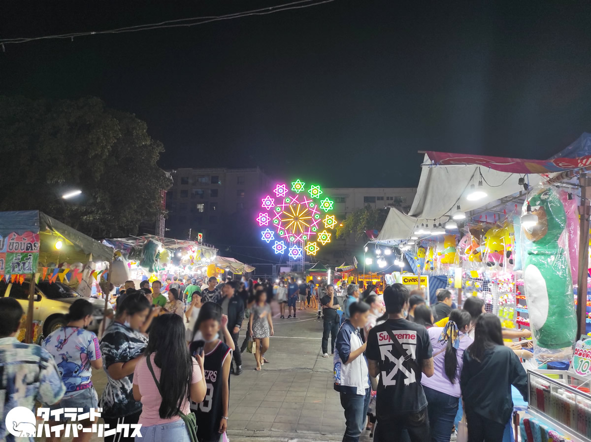 バンコク・ホワイクワンのナイトマーケットといえば、ホワイクワン交差点の西に伸びるプラチャソンクロ通りのナイトマーケットが有名ですが、年に何度かホワイクワン競技場(สนามกีฬาห้วยขวาง サナームキラーホワイクワン)でもナイトマーケットが開催されます。間もなくロイクラトンになる、今がその時期。そこは正にお祭りでした。
