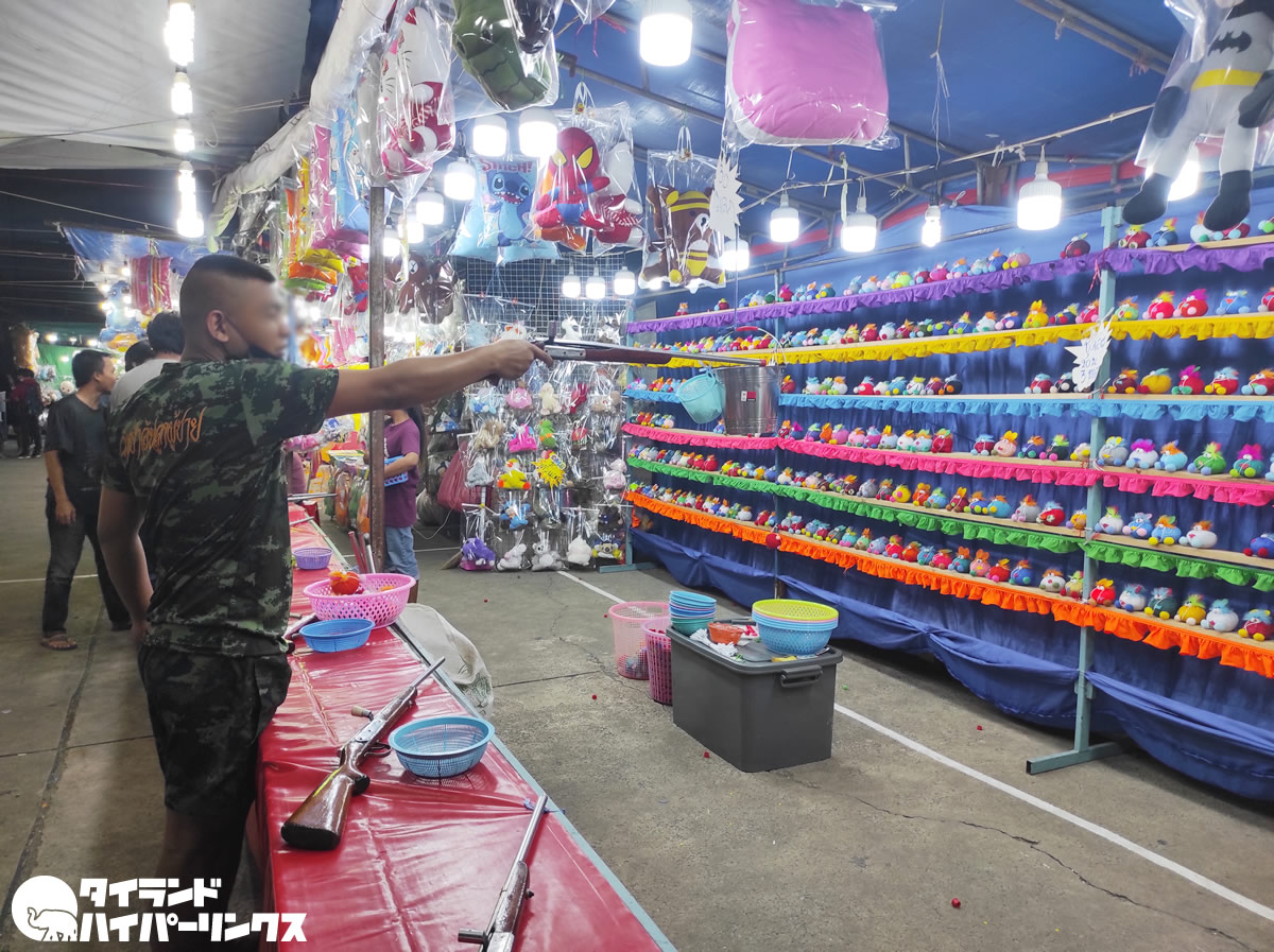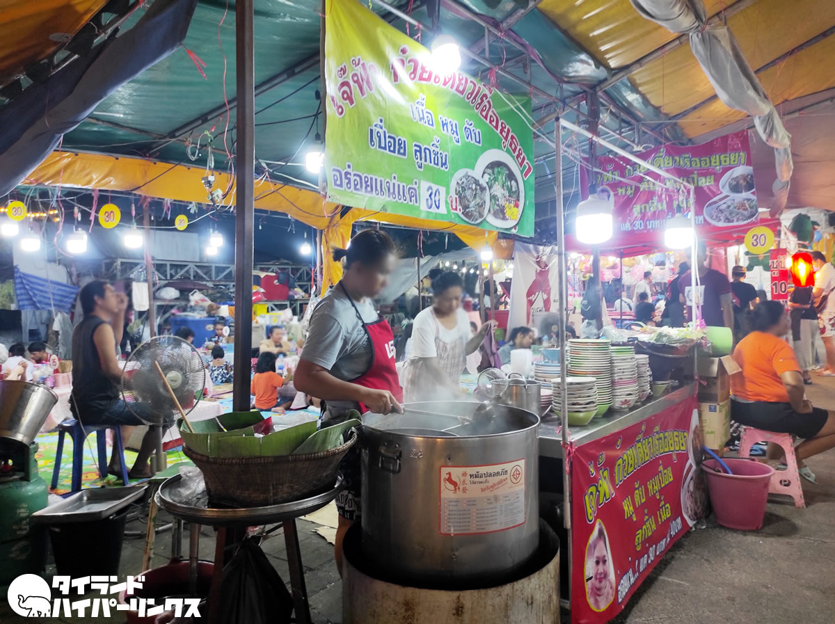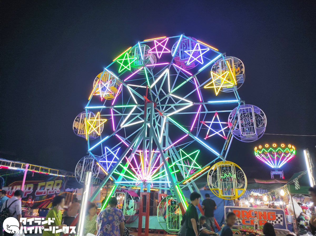 ソンクラーンやロクラトンなどの時期に年に何度か、10日間に渡って開催されるという、ホワイクワン競技場のナイトマーケット。美味しい料理の屋台が並ぶのはもちろんのこと、楽しいアトラクションも盛りだくさんです。