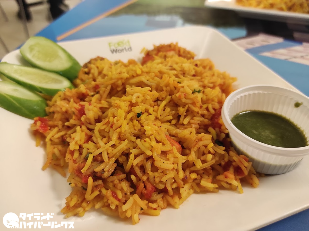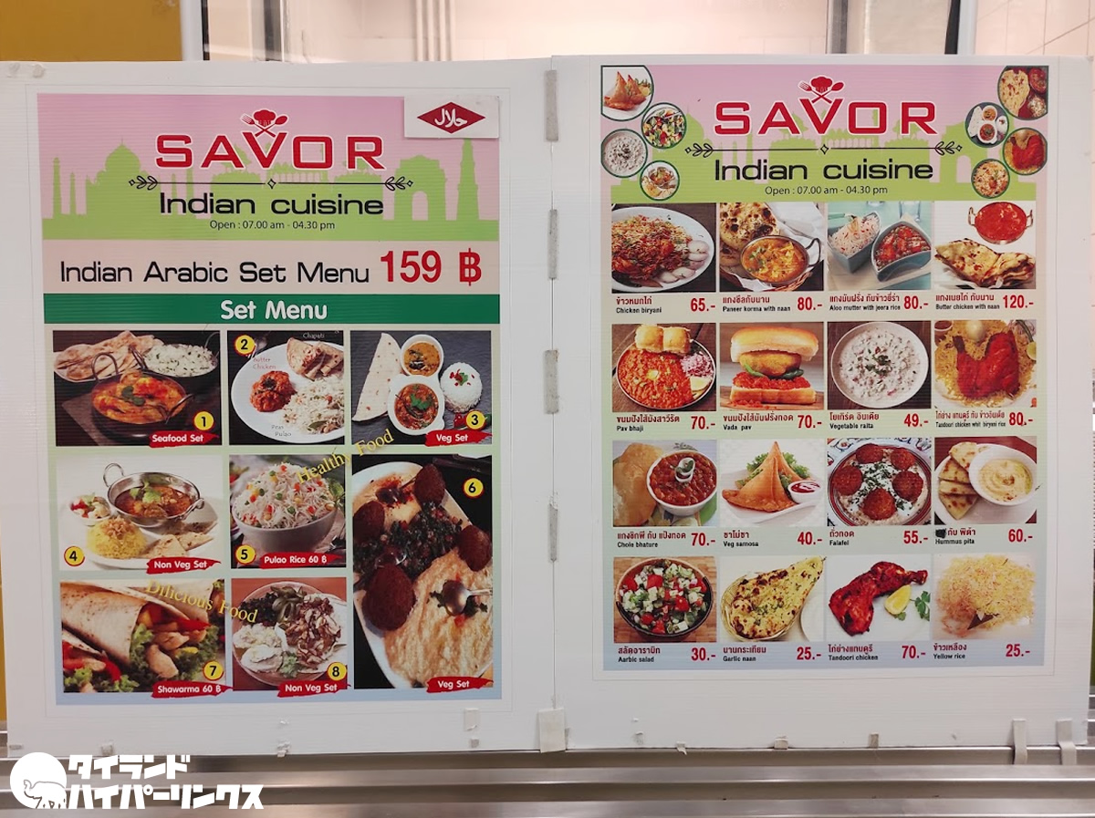 タイ王国政府総合庁舎の1階には日本料理店などもありますが、この日に訪れたのはフードコート「Food World」。たくさんの店が並ぶ中で選んだのは「SAVOR INDIAN CUISINE」というインド料理店でした。