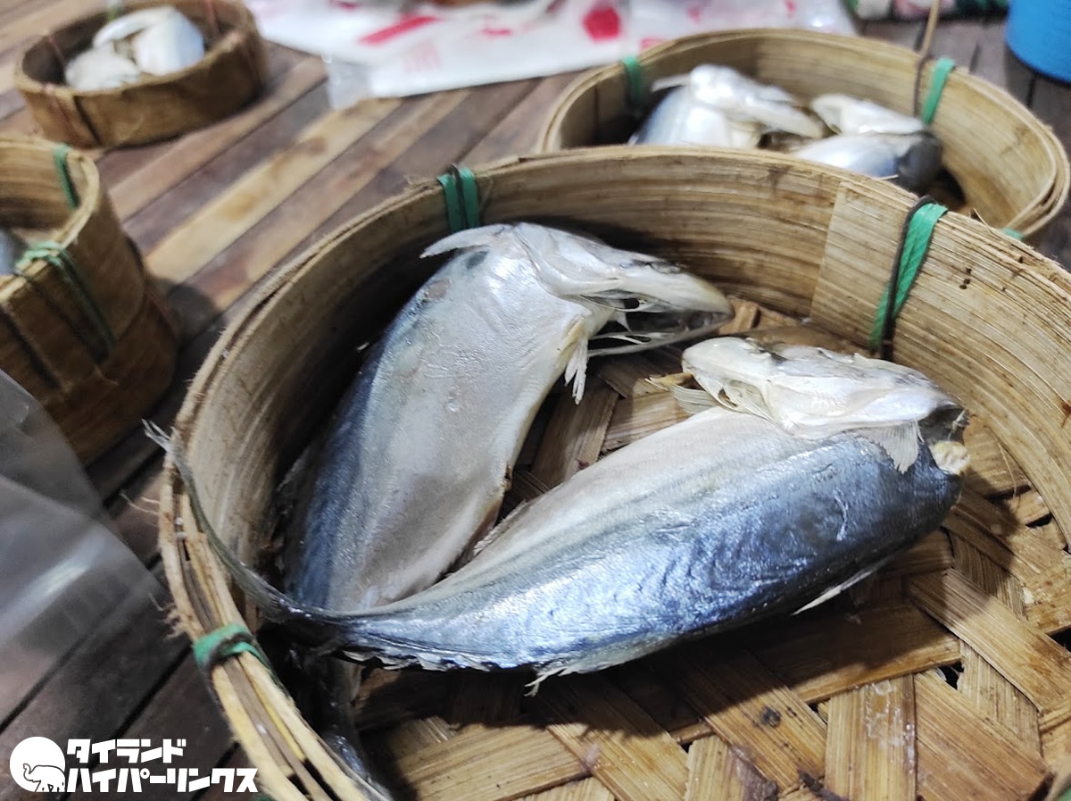 タイの市場でよく見られる、丸いカゴに入って売られている魚の干物。それが「プラートゥー(ปลาทู)」。アジのようにも見えますが、グルクマと呼ばれるサバの仲間です。