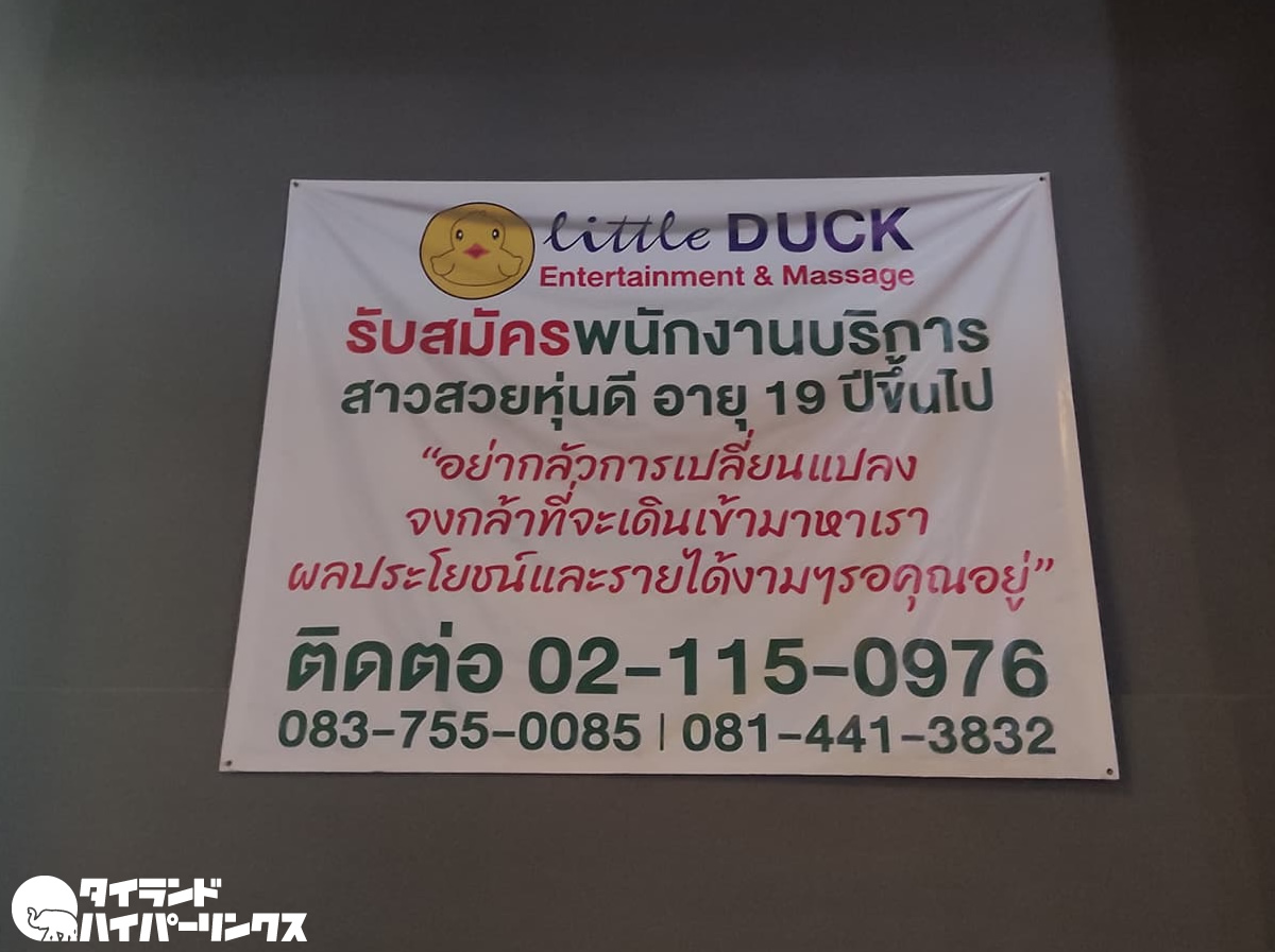 外国人女性や未成年の少女を働かせて人身売買をしたとして、人気のマッサージパーラー「ナタリー(NATAREE)」が摘発されて営業停止になったのが2016年のこと。しばらく建物はそのままで廃墟のようになっていましたが、2019年6月にはその場所に「リトルダック(little DUCK)」という店ができたのです。