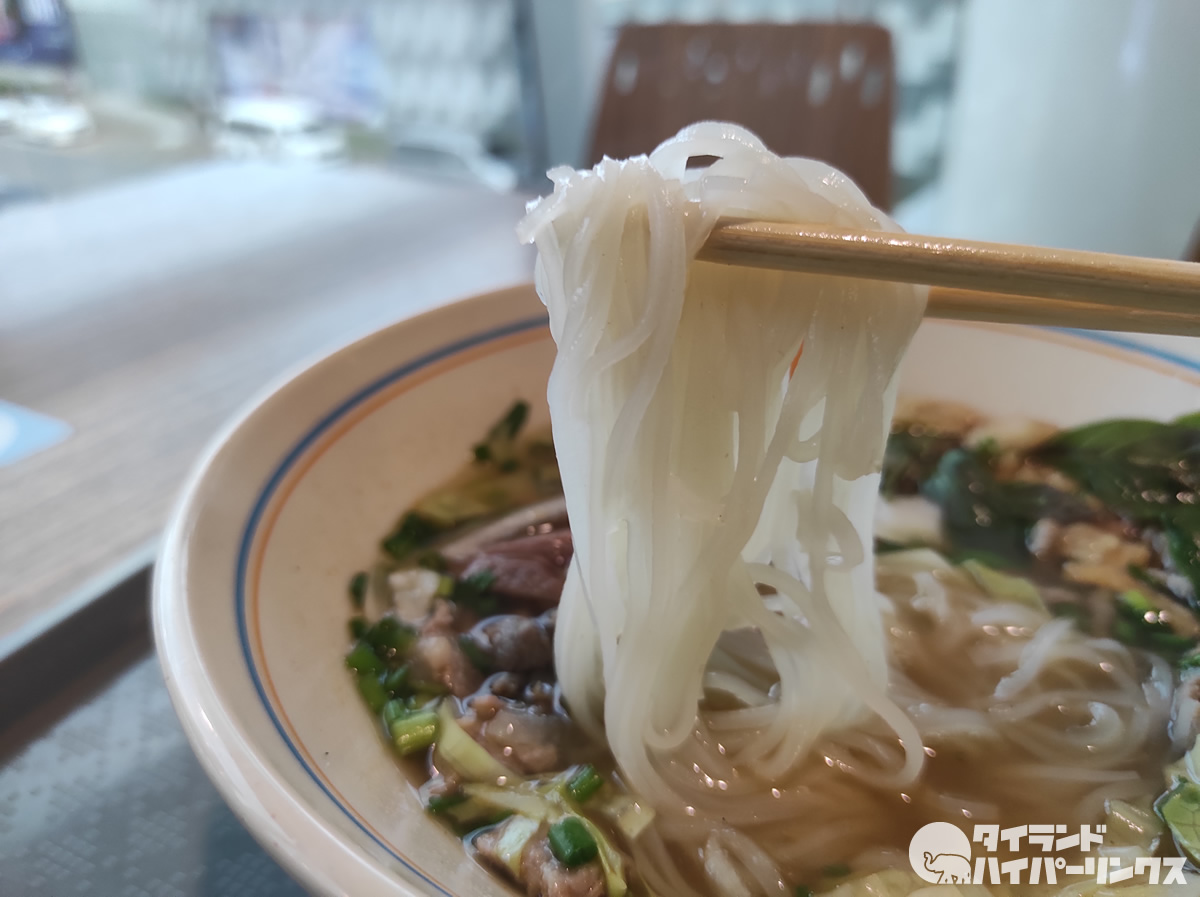 フォーの麺は米粉麺。ここの麺はタイヌードル「クワイティアオ(ก๋วยเตี๋ยว)」の細麺センレック(เส้นเล็ก)を使っているようです。