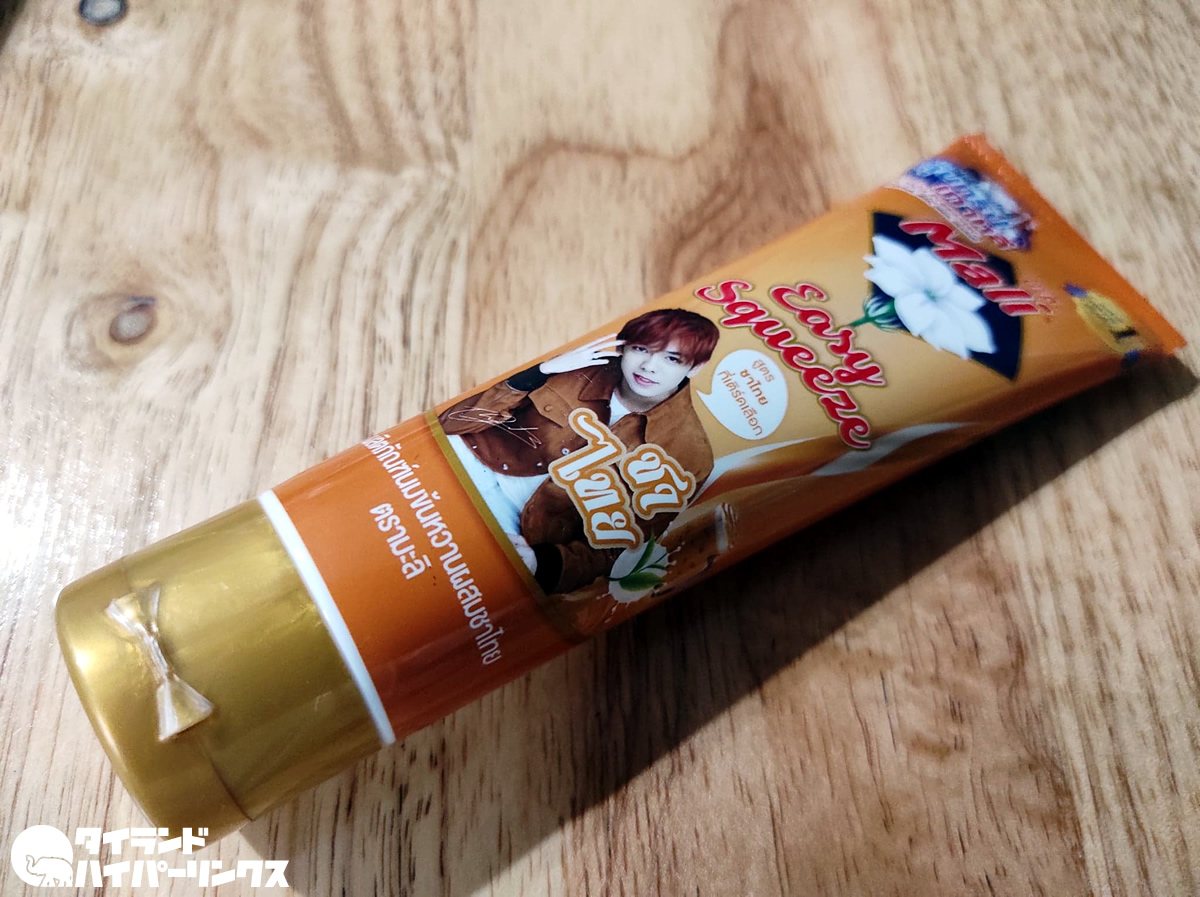 そんな練乳の大手ブランド「Mali(มะลิ)」の、タイ紅茶味の加糖練乳を発見。チューブ入りの「Mali Easy Squeeze Sweetened Condensed Milk Product with Thai Tea(ผลิตภัณฑ์นมข้นหวาน ผสมชาไทย ตรามะลิ)」です。