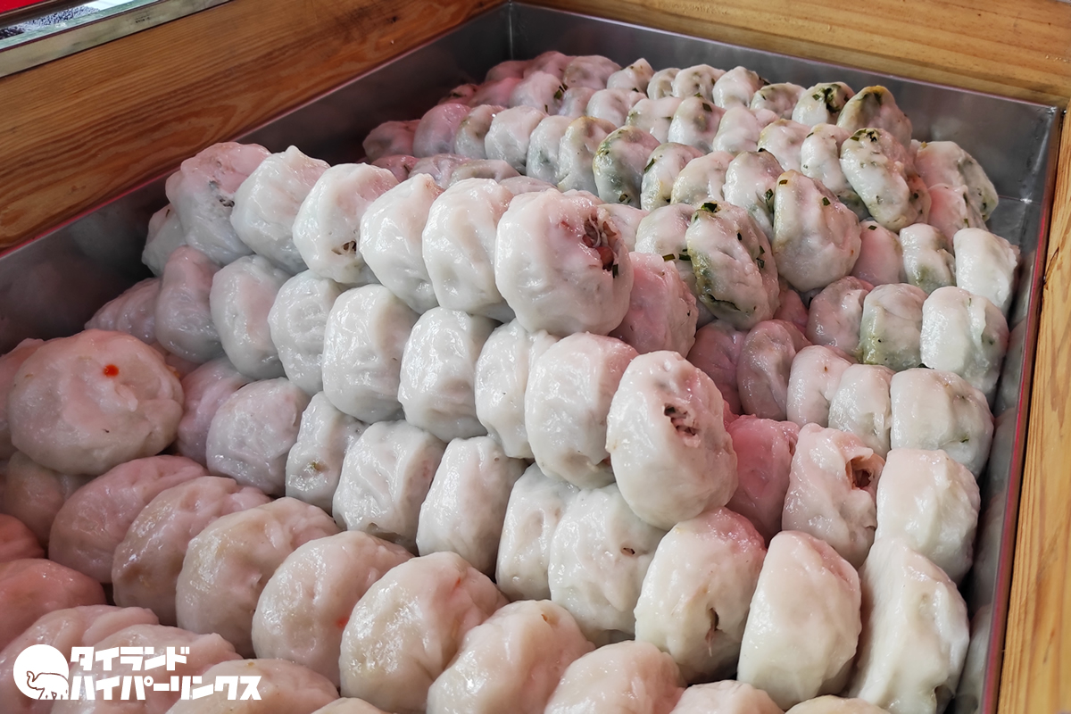 「カノムクイチャーイ」は米粉と片栗粉で作った生地に、ニラなどの具材を詰めて蒸したもの。生地はモチモチしているので、饅頭と言うよりも餅と言ったほうが相応しいかも。