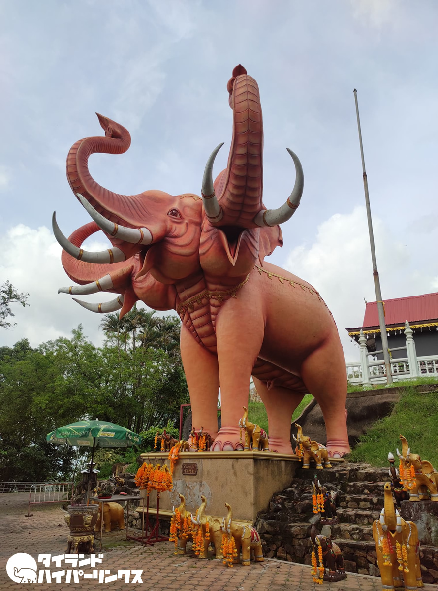 他にもたくさんの象が祀られているこの場所が1箇所目の絶景スポット。遙か向こうの方に見えるのは(おそらく)ソンクラー湖です。