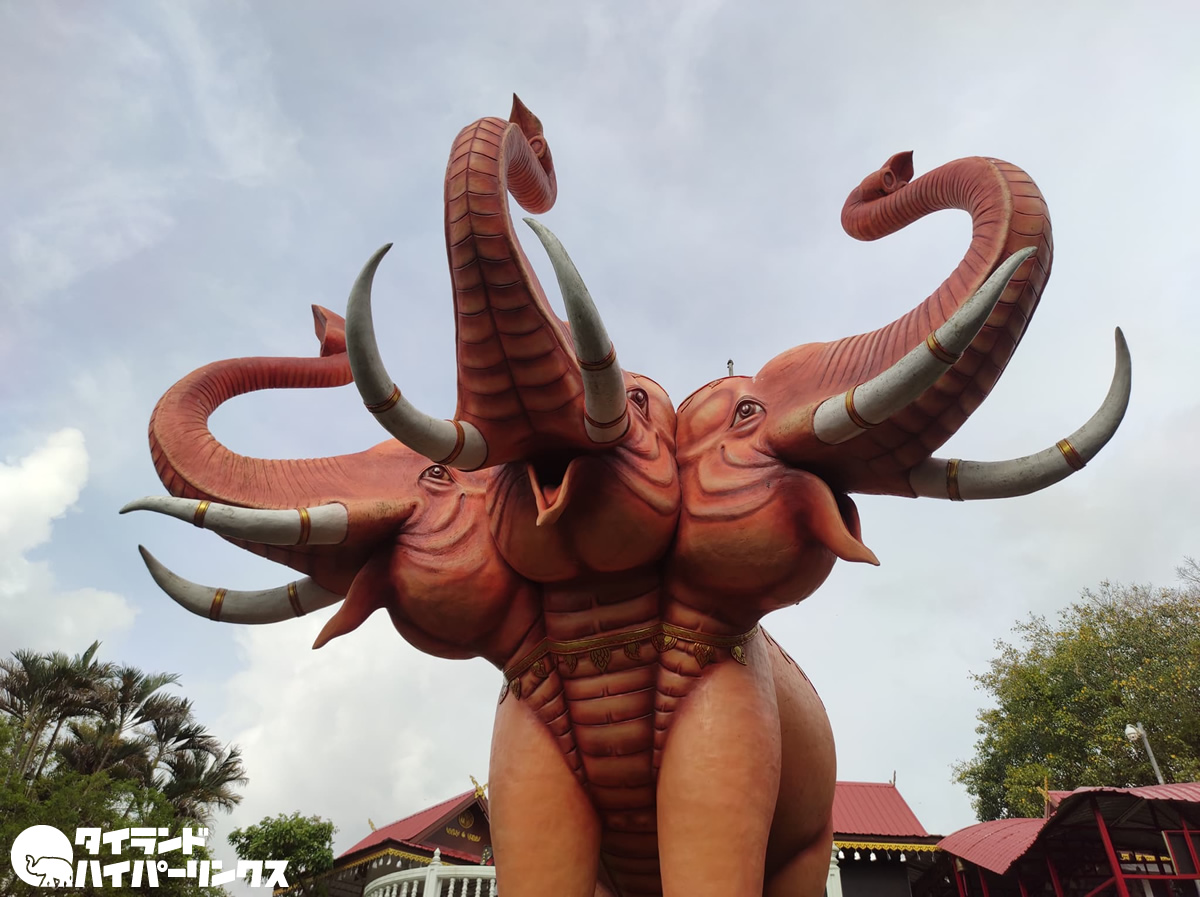 運転さんは「ここで待ってるから上に行ってきて」とのことで、坂を登り、階段を登り、辿り着いたのが三頭の象でした。