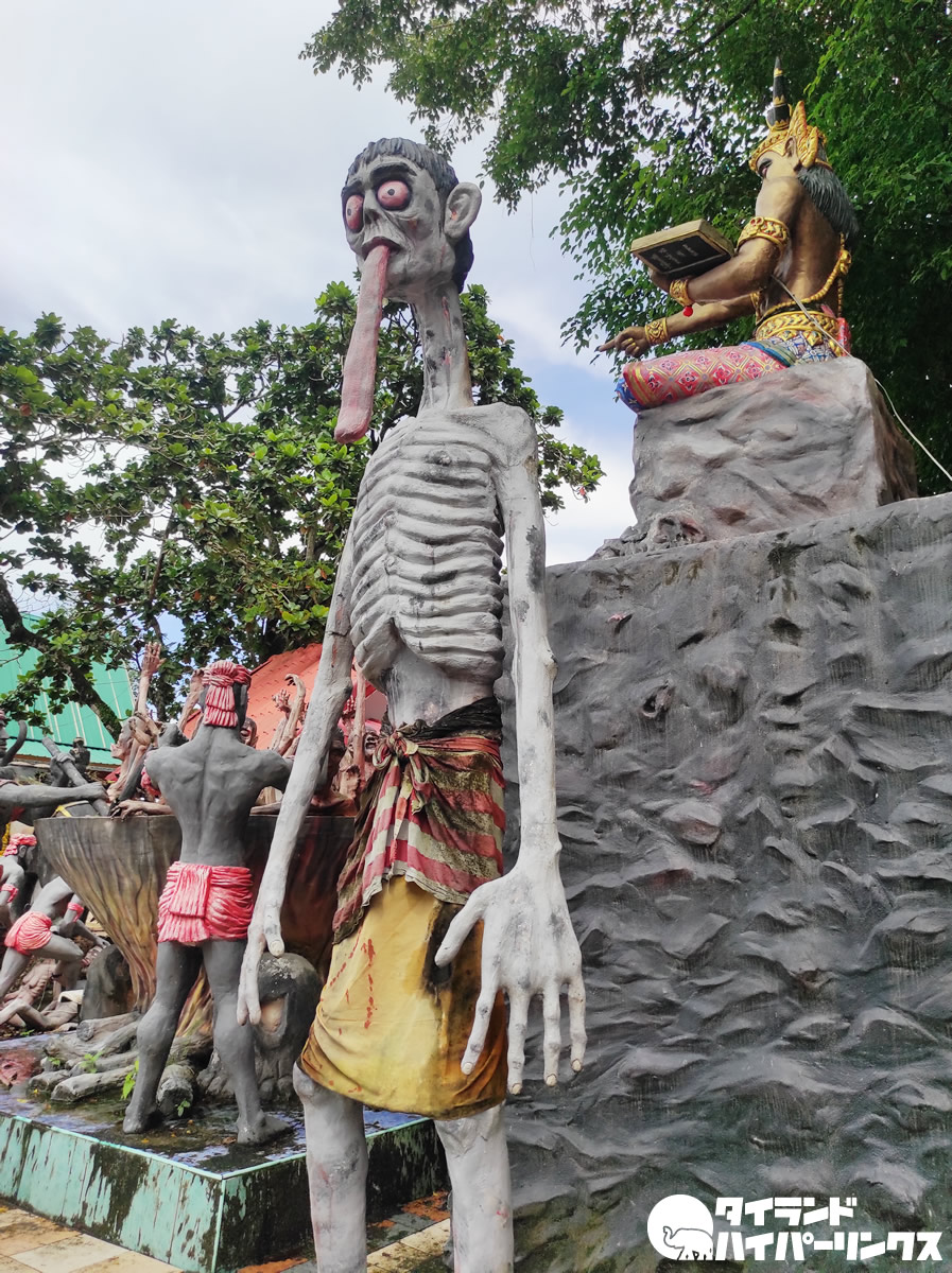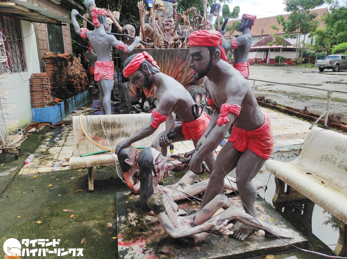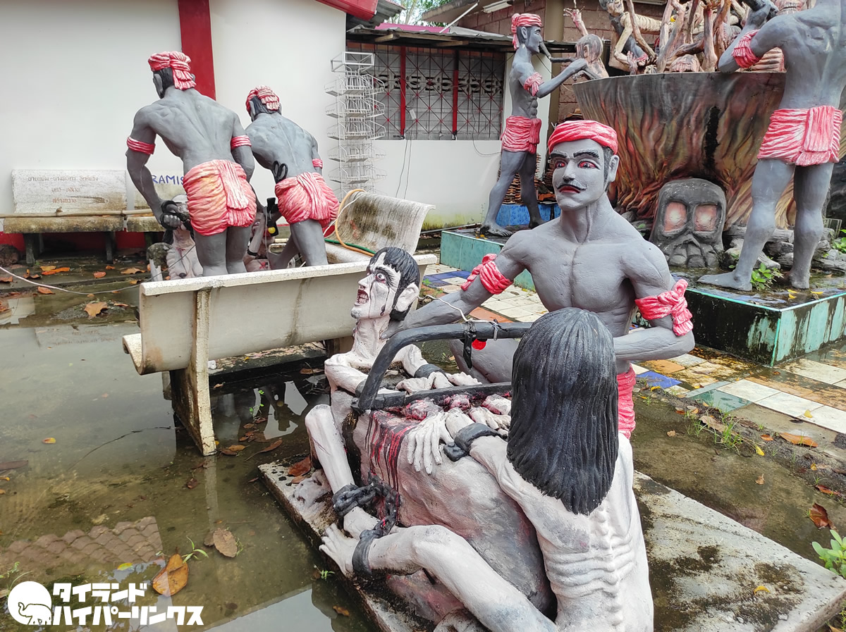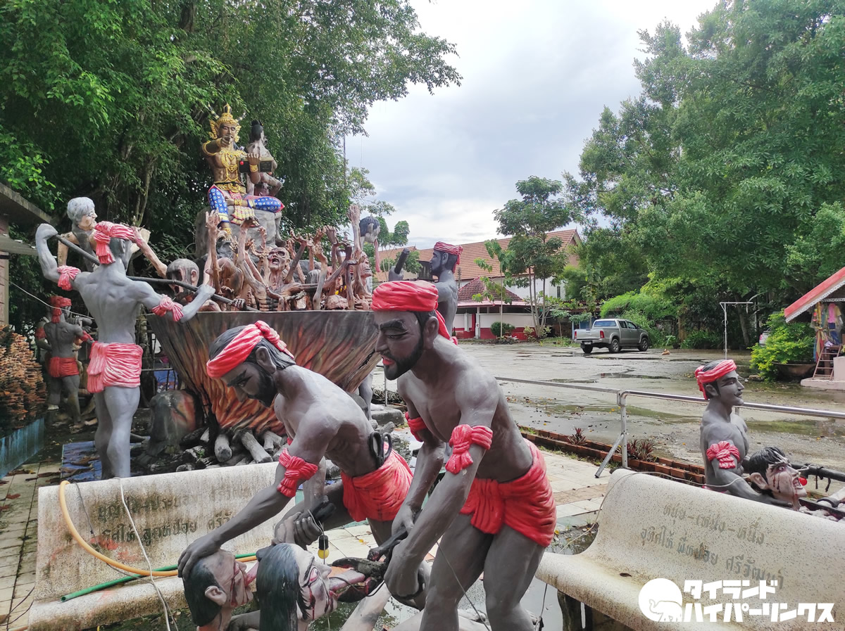 じつはここに飾られているのは、地獄の風景を形にした像の数々。タイ各地に同様の寺院がありますが、ハジャイにもあるんですね。「ワット・コークスーン」の場合は、コンパクトにまとめられています。