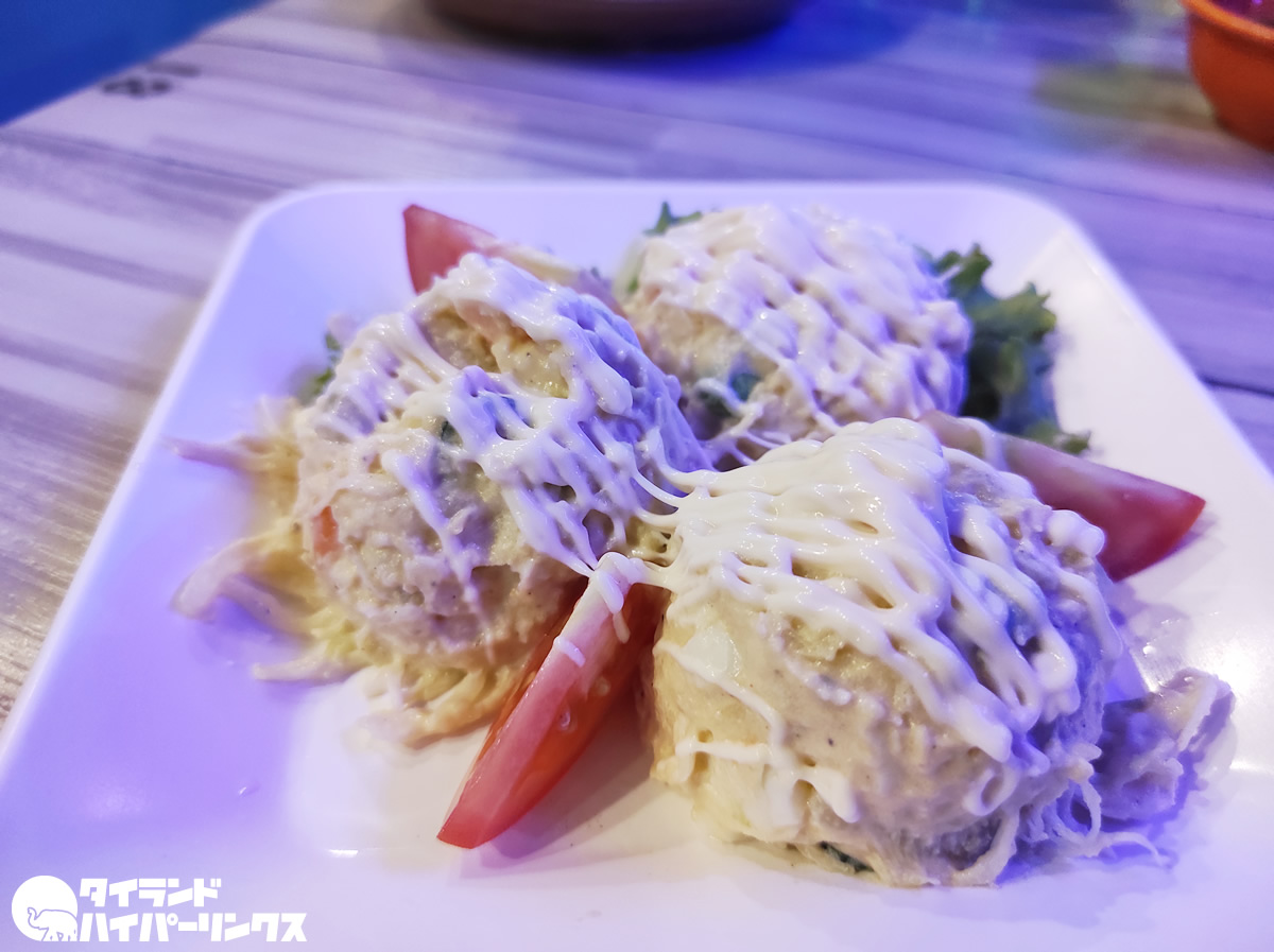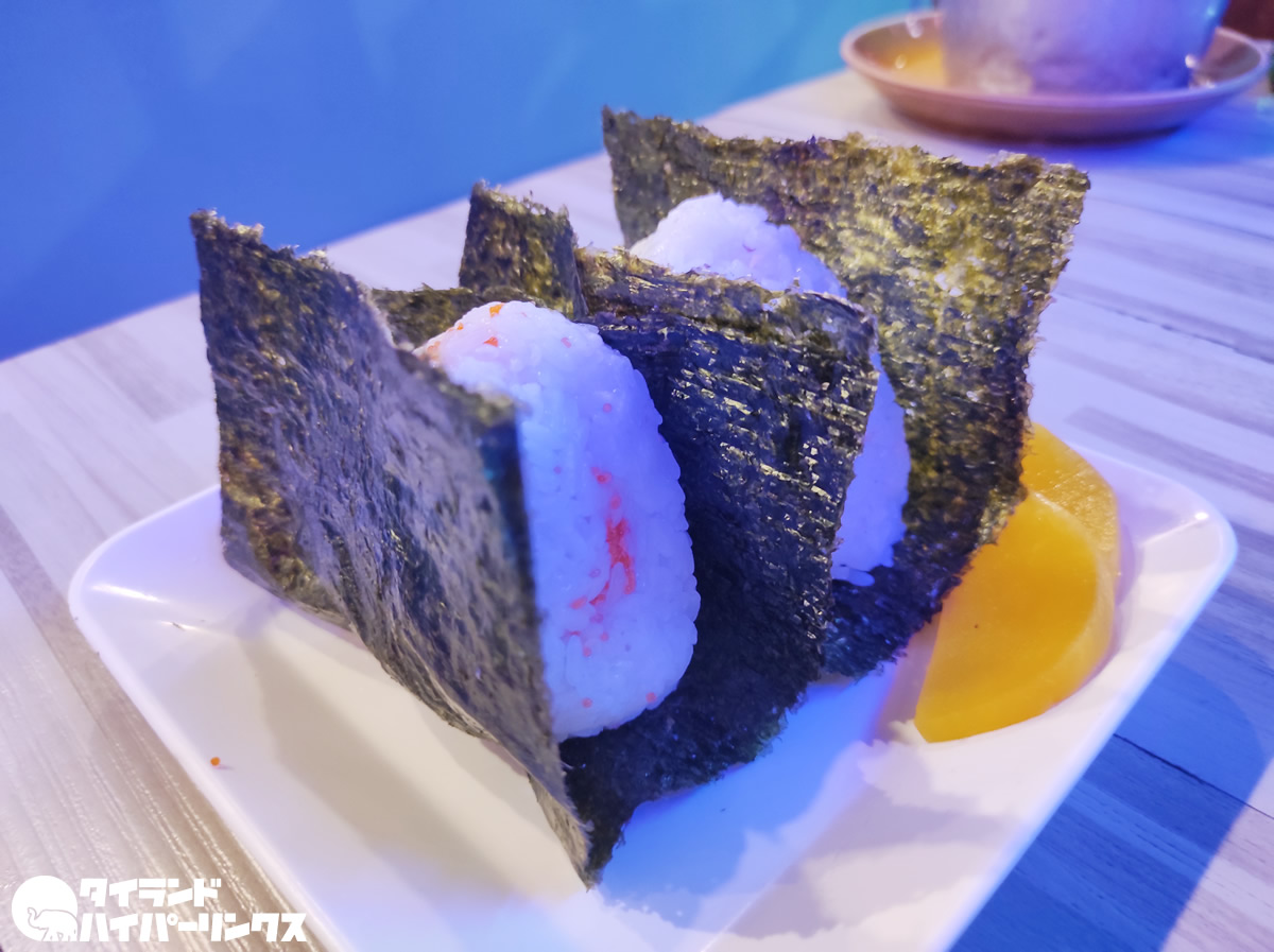 そして沢庵がついたおにぎり。これもデカい!先程も書きましたが、この5品で325バーツ、日本円にして1000円強。食べきれないほどで1000円強はお得すぎです。