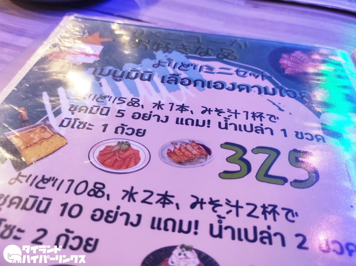 そんな中で迷いに迷った上で決めたのが、325バーツで水と味噌汁が付いて専用メニューの中から5品が選べるという「よりどりミニセット」です。