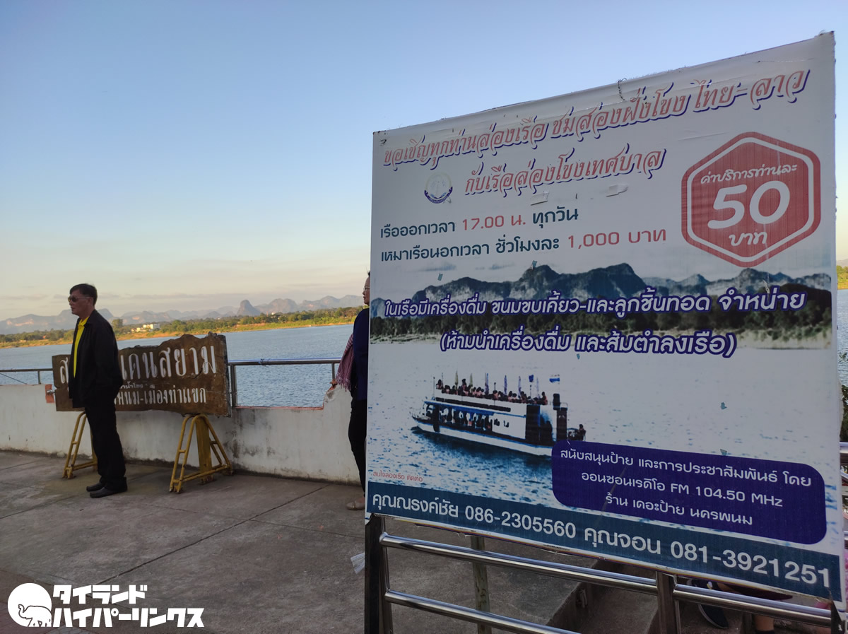 タイ東北部ナコンパノムのシンボルである黄金のナーガ像があるのは、メコン川沿いの広場。たくさんの観光客が集まるこの場所のハイライトの1つと言えば、メコン川クルーズでしょう。